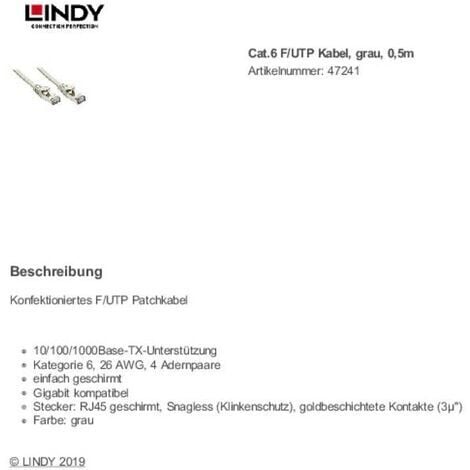 Câble PIMF (paires en feuillard métal). Câble Réseau Lindy S/FTP Cat.6 5m Noir - Performances Gigabit Ethernet Connectique: RJ45 , Snagless (protection anti-accroc), contacts or . Lndy 70m Cat.6A S/FTP LSZH Netzwerkkabel LAN-Kabel, Twsted Par... Lindy 36671, 0,5 m, USB A, USB B, 2.0, 480 Mbit-s, Noir, Gris - Câble informatique Achetez votre LINDY 47185 RJ45 Câble réseau, câble patch CAT 6a S/FTP 20.00 m noir avec cliquet d Câble réseau S/FTP Cat.6 avec prise en charge de bande passante jusqu'à 250MHz et doté d'un système anti-accroc, avec contacts plaqués or pour les normes Ethernet jusqu'à 1GBase-T. Câble Cat.6 pour fréquences de fonctionnement jusqu'à 250MHz en version blindée avec tresse comme blindage général et blindage pour les paires... Garantie Fabricant : 1 an(s) Catégorie 6, 28 AWG, 4 paires ., Compatible Gigabit .