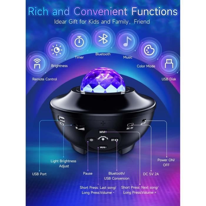 【Design de la télécommande】: Deux façons d'allumer le projecteur de lumière de la nébuleuse de l'astronaute : bouton arrière et télécommande (2*AAA nécessaires, non inclus). 【Facile à utiliser】: la galaxie étoilée haute résolution peut être projetée sur les murs et les plafonds avec un réglage flexible de l'angle de projection. Projecteur Ciel étoilé Soldes , SEBRUANC LED Starry Lampe Avec Projecteur Ciel Etoile La veilleuse de nuit pour bébé alimentée par prise de courant peut être alimentée par un câble USB de type C, une alimentation mobile ou un ordinateur portable, pas besoin de changer les piles pour cette veilleuse projecteur d'étoiles ! Vitesse et luminosité du changement de nébuleuse réglables La couleur, la vitesse et la luminosité des nébuleuses et des étoiles peuvent être réglées à distance pour différentes occasions. Le bouton de la veilleuse ne peut qu'allumer le projecteur et l'interrupteur des étoiles, une pression longue pour l'éteindre. Voulez-vous que votre enfant s'endorme à l'heure comme vous le souhaitez ? Vous voulez créer une surprise romantique lors d'un rendez-vous ? Vous cherchez un cadeau pour l'anniversaire ou le Noël de votre enfant ? La magie du sommeil - Faire s'endormir les enfants est toujours un défi, transporter ce projecteur d'étoiles portable rendra les nuits beaucoup plus paisibles ! Projetez des lumières d'étoiles et de nébuleuses où vous voulez pour créer un environnement merveilleux et rêveur pour votre chambre d'enfant/chambre à coucher/voiture/tentre/salon/petit cinéma maison/salle de jeux. La veilleuse pour enfants fonctionne en silence et crée un monde de rêve pour un environnement de sommeil parfait. Achetez projecteur ciel étoilé projecteur led projecteur galaxie lampe galaxie ciel etoile plafond veilleuse chambre a coucher du marchand Shop910351019 Store en ligne ❤️ Obtenez les meilleurs nouveaux produits de BestDealPlus.com tous les jours. Projecteur Ciel Etoile, Projecteur de Galaxie D'astronaute Ciel étoilé Astronaute Projecteur Ciel De Galaxie, Starry Sky Avec Nébuleuse... Notre veilleuse OVNI peut être utilisée partout. Projecteur de fête - Comme il serait impressionnant d'apporter un ciel étoilé coloré pour les anniversaires, les vacances, les réunions de famille, les fêtes de Noël ou d'autres occasions. La télécommande permet de régler la couleur, la vitesse et la luminosité de la nébuleuse et des étoiles, et peut également être programmée pour allumer et éteindre. 2 façons Nous proposons deux façons d'allumer le projecteur lumineux Astronaut Nebula : le bouton arrière et la télécommande (nécessite 2*AA, non incluses). Projecteur de Galaxie D'astronaute Luière de Nuit étoilée avec...