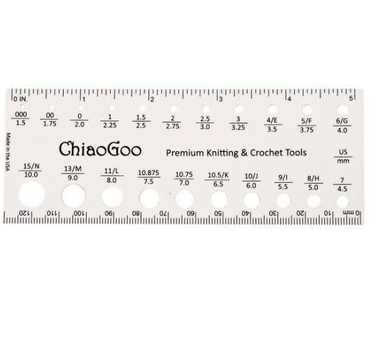 Description du produit Cette jauge d'aiguille (ou modèle d'aiguille) par Chiaogoo est un accessoire pratique pour déterminer la taille de vos aiguilles en tricot ou des crochets - en particulier indispensable pour les aiguilles de tricot sans bouton ou aiguilles circulaires sans numéro d'aiguille, mais aussi un excellent outil à avoir, Si le numéro d'aiguille s'est estompé au fil des ans. Facile à utiliser pour des motifs complexes. Adapté aux débutants comme aux experts. Règle pour mesurer l'échantillon et la taille de l'aiguille Fabriquée en plastique résistant Longueur : 20 cm Le fabricant ChiaoGoo offre des informations et des images supplémentaires sur son produit ChiaoGoo Jauge à aiguille 20 cm sur son propre site web. Visitez le site web du fabricant pour les dernières informations sur ce produit This needle gauge is made of durable, white plastic and is equipped with a ruler, with a measurement in centimetres (up to 20cm) on one side and inches (up to... ChiaoGoo Jauge à Aiguille 20 Cm Idéal pour des créations variées. ChiaoGoo Twist LACE auswechselbare Nadelspitzen alle Größen alle Längen Idéal pour des projets créatifs et uniques. Idéal pour des projets décoratifs. Facile à assortir avec d'autres fils.
