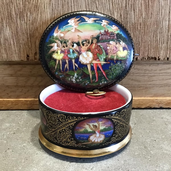 Parfait pour les collectionneurs et les admirateurs de ballet, il ajoute une touche d'enchantement à n'importe quel espace. Boîte à bijoux musicale à charnière Swan Lake par The San Francisco Music Box : : ModeAchetez-le avec Cet article : Boîte à bijoux musicale à charnière Swan Lake par The San Francisco Music Box 27100€ Recevez votre article 26 juil. - 2 août En stock Cuzit The Lord of the Rings Boîte à musique à manivelle en bois gravé 1099€ Recevez-le jeudi 24 juillet En stock Prix... Mélodie : « Lac des cygnes », taille : 15,2 cm de haut lorsqu'il est ouvert, 8,9 cm fermé Cette boîte à bijoux musicale est non seulement une pièce fonctionnelle pour ranger de petits trésors, mais aussi une charmante œuvre d'art qui capture la grâce et la romance du lac des cygnes. Boite A Bijoux Enfant Boîte à Bijoux Musicale DANSEUSE ÉTOILE - 201907121659 Boite A Bijoux Fille The San Francisco Music Box Company Boîte à bijoux musicale Laissez-vous tenter par l'élégance et le charme du ballet avec la boîte à bijoux musicale à charnière Swan Lake. La musique délicate et la danseuse tourbillonnante créent un affichage captivant qui évoque la beauté intemporelle du chef-d'œuvre de Tchaïkovski.