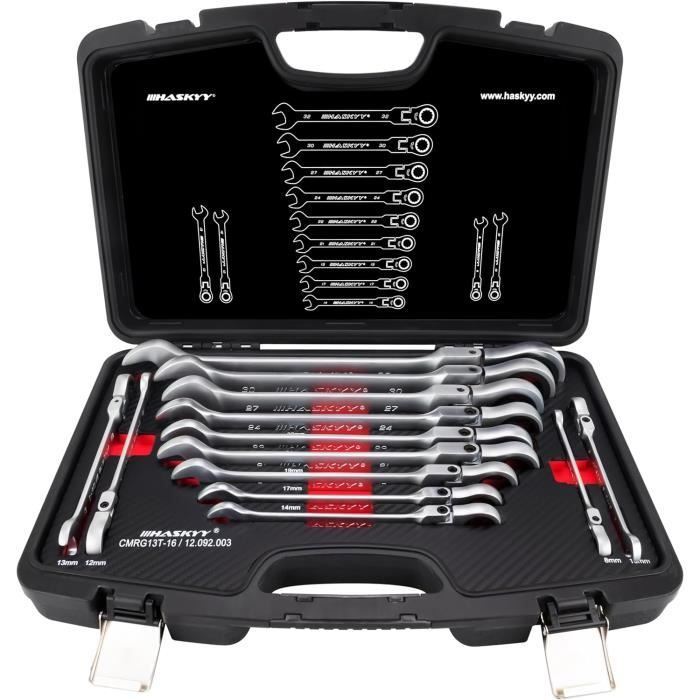 Clé mixte à cliquet SW9 mm Clé mixte à cliquet SW 10 mm. Clé mixte à cliquet SW 19 mm. Jeu de clés mixtes à cliquet | SW 8 - 22 mm | 12 pièces. Entièrement assortis dans un sac à roulettes Tetron solide. Tailles disponibles : 6 x 7 mm., 8 x 9 mm., 10 x 11 mm., 12 x 13 mm., 14 x 15 mm., 16 x 17 mm., 18 x 19 mm., 20 x 22 mm., 21 x 23 mm., 24 x 27 mm., 25 x 28 mm., 30 x 32 mm. Clé mixte à cliquet SW 8 mm. SW 8 - 22 mm, en acier au chrome vanadium, chromé mat, avec fonction cliquet pour rotation droite/gauche Avec fonction cliquet pour rotation droite/gauche. Jeu de 12 clés mixtes à cliquet. Article pour une longue durée de vie en utilisation quotidienne en atelier Gray Tools Clé polygonale plate à cliquet TYR608 | Equipment World Clé mixte à cliquet SW 11 mm. Clé mixte à cliquet SW 12 mm. Cle A Cliquet Coffret Cliquet Jeu De 22 Clés à Cliquet Articulées 6-32 Mm - Clé Clé Plate A Cliquet De 6 A32 Dans les tailles : 6 x 7, 8 x 9, 10 x 11, 12 x 13, 14 x 15, 16 x 17, 18 x 19, 20 x 22, 21 x 23, 24 x 27, 25 x 28, 30 x 32 mm Fabriqué en acier au chrome vanadium qui peut protéger contre la corrosion. Livré dans un étui de transport moulé par soufflage pour un rangement et une... Fonction cliquet avec 72 dents, denture fine. Extra trempé et chromé., Double coudée. Article pour une longue durée de vie en utilisation quotidienne en atelier. Fonction cliquet avec 72 dents, denture fine, articulée, angle à 90° en continu Clé mixte à cliquet SW 14 mm. Clé mixte à cliquet SW 16 mm. En acier au chrome vanadium, chromé mat. Clé mixte à cliquet SW 22 mm. • Changement de direction en tournant la clé• Forgé en acier Chrome Vanadium• Finition hautement chromée
