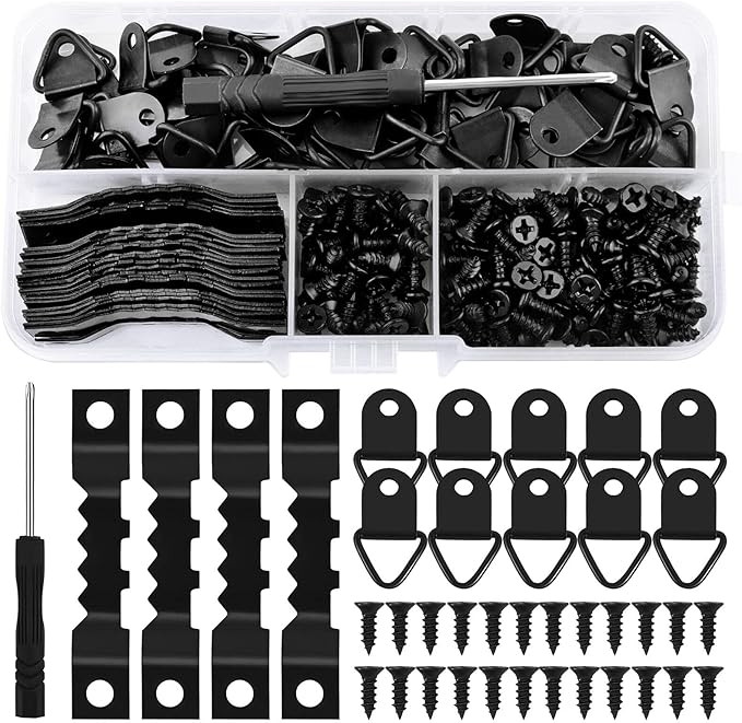 [Contenu de l'ensemble] : cet ensemble contient 20 crochets dentelés dorés et 40 vis dorées. et peut accrocher fermement différents types d'objets décoratifs tels que des cadres photo, des horloges, des tableaux, etc. CINTRES POUR CADRES Photo Mural Crochet En Dents Scie Frame Combinaison Assortiment de cintres pour cadres photo : cet ensemble de 220 pièces de suspension pour tableaux est livré avec tous les accessoires nécessaires, y compris des crochets, des fils, des clous, des anneaux en D, un niveau et un marteau. [Matériau] Le cintre pour tableau est fabriqué dans un matériau métallique de haute qualité, la surface du crochet est lisse, durable et utilisée... [Largement utilisé] : le crochet dentelé convient aux endroits tels que les maisons, les bureaux, les galeries, etc. Attache Assiette Murale 20 Pièces Cintres Pour Tableaux,crochets De Suspension Pour Languette Accroche Tableau La conception à dents fines offre une meilleure adhérence et stabilité pour empêcher les objets de glisser [Bon matériau] : Fabriqué en métal, il est durable, pas facile à rouiller, peut supporter un poids important et convient à une Différent de besoins de Installation [Taille] : la taille du crochet dentelé est de 39 x 7 mm et la taille de la vis est de 3 x 8 mm, ce qui permet de suspendre fermement des articles de différentes tailles et poids et de fournir un support fiable cintre mural pour photo de mariage, travail d'art, peinture à l'huile, miroir, 20 pièces · 5,43€. 7 vendus. 50 100 ensembles de crochets de cadre Photo en...