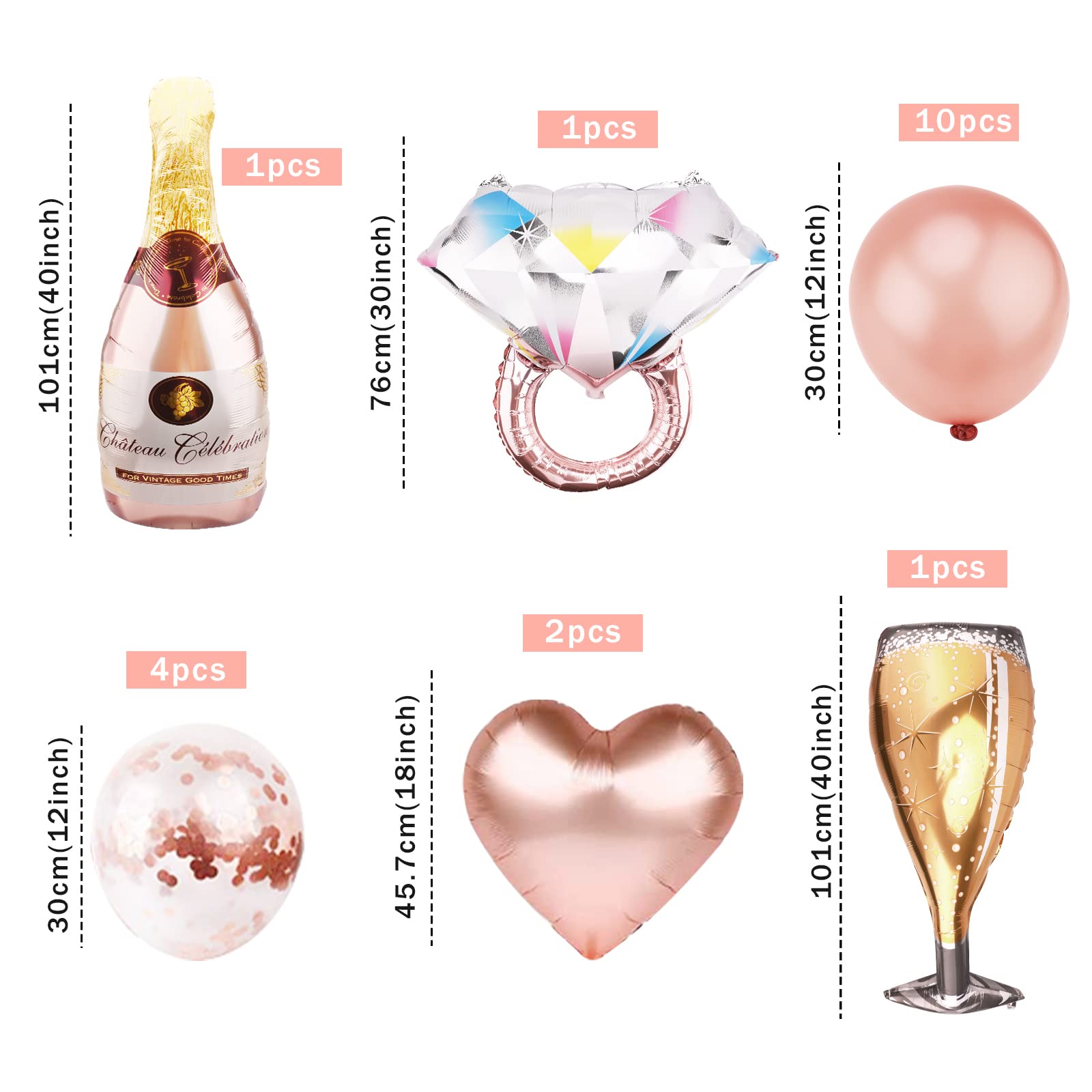 Ensemble de ballons en or rose, contient tous les ballons dont vous avez besoin pour la fête, tous les ballons sont faits de matériaux de haute qualité, vous pouvez le coller au mur pour créer une atmosphère romantique et agréable pour votre enterrement de vie de jeune fille, il vous apportera certainement un moment inoubliable faire la fête Le forfait comprend : 1 * ballons BRIDE TO BE 10 * ballons en latex or rose 4 * ballons en latex confettis 2 * ballons en aluminium en forme de cœur 1 * ballons en forme de champagne 1 * ballons en forme de verre 1 * ballons en forme de bague en diamant 1 * 10 m de ruban en or rose Des astuces: 1., Veuillez vous tenir à l'écart des objets tranchants 2., Tenir à l'écart des enfants de moins de trois ans Ensemble de ballons de décoration de fête de poule vous obtiendrez 1 ballons en aluminium BRIDE TO BE, 10 ballons en latex or rose, 4 ballons en latex... Taille : le ballon Bride to be mesure 16 pouces, tous les ballons en latex mesurent 12 pouces, les ballons en forme de champagne et de verre mesurent 40 pouces, les ballons en aluminium en forme de cœur mesurent 18 pouces et les ballons en diamant mesurent 30 pouces. Ballons Evjf Bride To Be Décoration,Hen Party Décorations Or Rose Ballons Pour Ensemble Evjf Kit de décoration parfait : ensemble de ballons en or rose, comprenant tous les ballons dont vous avez besoin pour votre fête de poule, il créera une atmosphère romantique pour votre fête, ils conviennent à toutes sortes de fêtes et occasions spéciales, douches nuptiales, anniversaires, mariages, poule., nuits, fiançailles. Organisez un enterrement de vie de célibataire inoubliable avec nos décorations festives, accessoires pour futurs marié(e)s, jeux, déguisements et idées... Ballons Blancs Argentés - EVJF Mariage – Lital Bride Conseils d'utilisation : Pour de meilleurs résultats, nous vous recommandons de remplir les ballons avec de l'hélium. Tous les ballons peuvent être remplis d'air ou d'hélium.