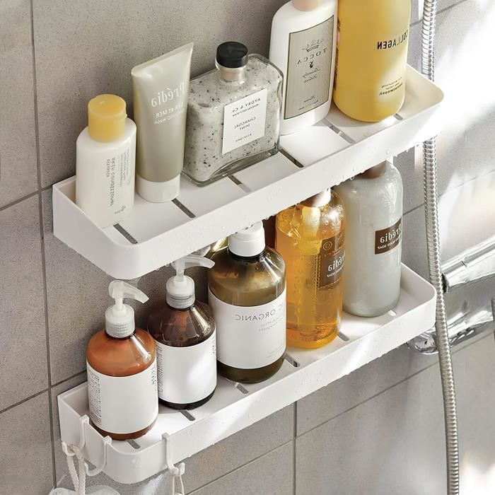 L'organisateur de salle de bain offre beaucoup de place pour vos accessoires de douche sur une surface minimale. Panier de Douche Pratique avec Deux Paniers pour Ustensiles de Salle de Bain - Espace de Rangement pour Salle de Bain - Étagère de Salle de Bain Tendance avec Étagère Et Crochet Étagère de douche sans perçage - 2 paniers de douche - Organisateur de... Matière: Plastique (ABS) Couleur: Transparent Dimensions L/H/P: 14 cm x 38,5 cm x 7 cm Poids non emballé: 495 g. Montage mural rapide et simple au moyen de pastilles adhésives super résistantes. Grâce à la disposition inclinée des 2 grands compartiments de rangement, le shampooing et autres peuvent être rangés de manière particulièrement peu encombrante. Grâce au système d'accrochage pratique, il se monte et se démonte en un clin d'œil. Rangement à portée de main des ustensiles de douche et de bain L'aide au rangement est parfaitement complétée par le porte-savon intégré et les crochets latéraux pour suspendre l'éponge de bain, le rasoir et bien d'autres choses encore. Vous recevrez 2 pièces. Etagère de douche inox 3 kg Wenko by Maximex étagère Angle Douche Maximex Étagère D'Angle Avec Deux Paniers Et Crochets Etagere D Angle Douche Compartiments avec écoulement d'eau pour éviter les flaques d'eau
