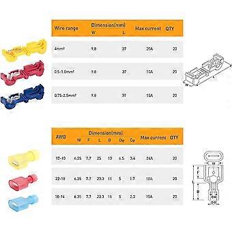 ★Prend en charge une tension maximale de 300V, le courant maximum pris en charge pour le rouge et le bleu est 10A, le jaune supporte le courant 15A. ★Facile à utiliser: connectez et organisez rapidement les câbles en 1 minute. Connecteur Electrique 120 Pcs T-Tap Connecteurs De Dérivation électriques Stromdiebe Set Pour Voiture, Connecteurs Rapides électriques En T Entièrement Isolés Douilles Plates Connecteurs Plats Kit, Pour Câbles De Connexion Gaine Thermorétractable Économisez beaucoup de temps et de force. Pas de coupe, de soudure et de scellement. ★Matériel: La coque est en nylon de qualité supérieure. Comment opérer 1., Placez le fil dans le connecteur, utilisez la pince pour serrer le connecteur ensemble jusqu'à ce qu'il se verrouille., 2., Insérez le fil dans le connecteur plat et serrez-le pour le fixer., 3., Branchez le connecteur plat directement dans le robinet. Disponible en bleu, rouge, jaune trois couleurs différentes, . Forfait comprenant 120 * connecteur de type T 120 * connecteur plat, ★Comment utiliser: 1., Placez le fil dans le connecteur, utilisez la pince pour serrer le connecteur jusqu'à ce qu'il se verrouille., 2., Insérez le fil dans le connecteur plat et serrez-le pour le fixer., 3., Branchez le connecteur plat directement dans le robinet. Certifié UL et CSA Kit de connecteurs de bornes électriques rapides 160 pièces, 60 RACCORDEMENT FACILE À TOUT FIL] Les connecteurs électriques en T auto-dénudants permettent de se raccorder à n'importe quel fil sans avoir besoin de le couper, de le dénuder ou de le souder. Le raccordement en milieu de câble n'a jamais été aussi simple.[QUALITÉ SUPÉRIEURE] Fabriqués avec des contacts en cuivre étamé plus épais, ces connecteurs sont suffisamment robustes pour se... Choix idéal pour le service et la maintenance domestiques, automobiles, motos et industriels. Fonctionnalité Connecteur étanche et résistant à la chaleur Connexion rapide, facile à utiliser. La pièce conductrice est en cuivre, qui présente une conductivité électrique parfaite. Bien organisé dans une boîte, propre et bien rangé, facile à ranger. VISSQH 30 Pairs JST S 3Pin Plug ale to Feale EL Câble Adaptateur...