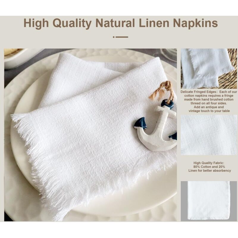 Gee Di Moda Lot de 12 serviettes de table lavables en polyester avec bords ourlés - Idéales pour les mariages, les fêtes, les dîners de vacances et plus encore - 43,2 x 43,2 cm - Beige Lot de 12 serviettes de table damassée Croisillons écru Chaque serviette dispose de bords ourlés et d'une construction sans couture. Lot De 12 Serviettes De Table Coton - 43,2x43,2cm - Coloris Entretien facile et durabilité fiable : ces chiffons sont facilement lavables en machine et peuvent être séchés en toute sécurité, conservant leur couleur et leur forme après plusieurs utilisations et lavages, ce qui en fait le choix préféré pour les organisateurs de fêtes professionnels et les organisateurs de fêtes. Lot de 12 serviettes en tissu de luxe avec bords ourlés. Lavable en machine et durable pour une utilisation répétée. Fabriqué en polyester de haute qualité et... Élégance polyvalente pour toutes les occasions : que vous organisiez un dîner formel, une réunion décontractée ou un événement professionnel, nos nappes et serviettes rehaussent votre décor avec une touche sophistiquée, assurant que votre table est toujours habillée pour impressionner. Leur design élégant complète n'importe quelle vaisselle et décoration Lot de 12 serviettes de table au design élégant et solide : ce lot de 12 serviettes de table de luxe de qualité hôtelière est idéal pour les environnements professionnels et les réceptions de mariage.