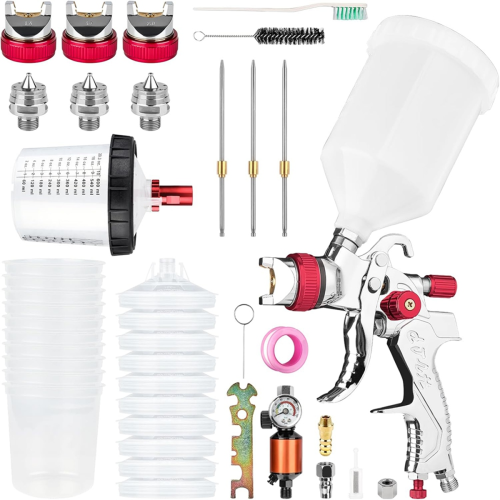 Pistolet pulvérisateur professionnel : pression de fonctionnement : 2,5–3,5 bar ; distance de pulvérisation : 170–240 mm ; consommation d'air : 275 l/min ; capacité de peinture : 600 cc. Il fournit une pulvérisation uniforme pour tous les types de revêtements de surface. Buses réglables : le pistolet à air comprimé est équipé de trois tailles différentes d'embouts (1,4 mm, 1,7 mm, 2 mm), ce qui facilite le choix du motif de pulvérisation qui convient le mieux à vos besoins Apprenez comment ils réduisent le brouillard de pulvérisation et offrent un meilleur transfert de produit. En utilisant le système de gobelets jetables, il réduit le gaspillage de matériaux de peinture et de solvants de nettoyage tout en éliminant le coût et la main-d'œuvre du nettoyage des gobelets traditionnels du pistolet pulvérisateur automobile. Il fournit une pulvérisation uniforme pour tous les types de revêtements de surface. Le pistolet pulvérisateur HVLP permet d'économiser 20 % de peinture, le taux d'utilisation de la peinture est jusqu'à 65 %, et la largeur de pulvérisation est de 240 mm, ce qui offre la meilleure performance. Le pulvérisateur de peinture peut régler la quantité et l'amplitude de la peinture en aérosol, et la valve de climatisation offre la possibilité de régler le débit d'air. Convient pour pulvériser des apprêts, des couches transparentes et d'autres revêtements à haute viscosité, ainsi que des apprêts, des couches de finition et des couches de détail pour l'industrie automobile et les meubles. Atomisation de haute précision : le couvercle du pistolet à peinture est fabriqué en laiton, et le capot à 15 trous est traité par usinage de précision pour obtenir un effet d'atomisation élevé. 【Économies de coûts et de main-d'œuvre】Le paquet de pistolet à peinture contient : 1 pistolet à peinture pour voiture, 3 types de buses, 10 gobelets jetables, 1 régulateur, 1 pinceau, 1 clé, 1 ruban d'étanchéité. Pistolet à Peinture Cómo Hacer Que Una Pistola Pulverizadora HVLP Funcione Mejor Para Pistolet A Peinture Electrique Pistolet à peinture,Pistolet pulvérisateur HVLP avec adaptateur et Pps... Votre achat de pistolet gravité de retouches sri hd trans-tech avec buse 1,0 mm DEVILBISS au meilleur prix ! - Achat / vente pas cher sur