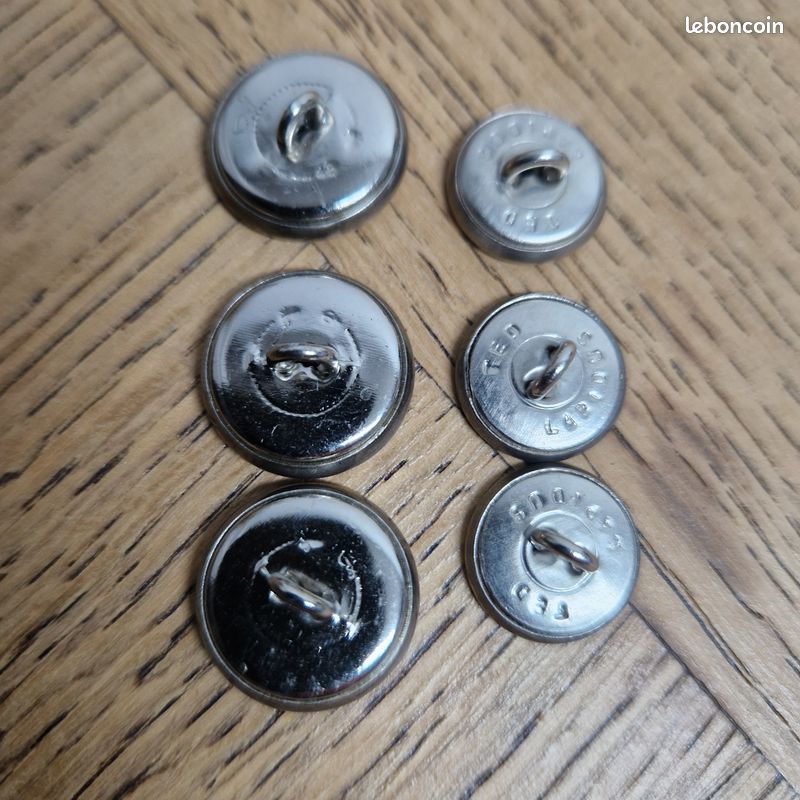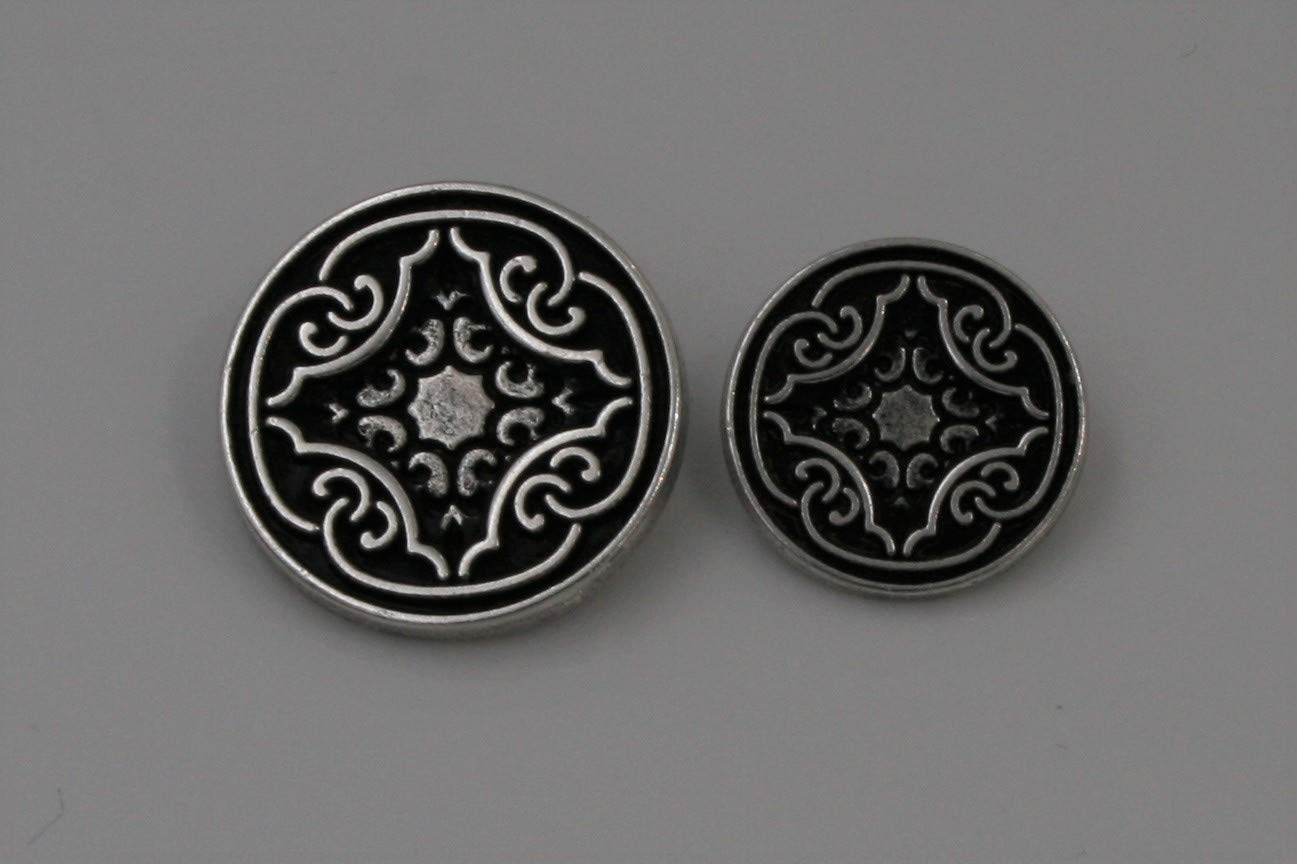 Boutons à œillets en métal simples et polyvalents. Boutons en métal argenté noircis, rainures illustrées. Forme plate, dimensions : environ 14 mm, 18 mm, 20 mm., Contenu du packaging : 6 , Fabriqué en Allemagne. Boutons Argentés Pour Vêtements Lot De 10 Boutons En Métal Argenté Noir Mat, Boutons À Bouton Couture 70s Argenté Bouton métallique argenté, finition chromée ou acier inoxydable Bouton Métallique Bombé - Haute Qualité Caractéristiques : 🔹 Matériau : Métal (acier inoxyda Bouton de livrée, en métal argenté noirci, rond, face plate striée horizontalement, décor en relief type blason, motif central oval avec 3 fleurs de lys... Bouton métal argent animaux chasse - A&A Patrons