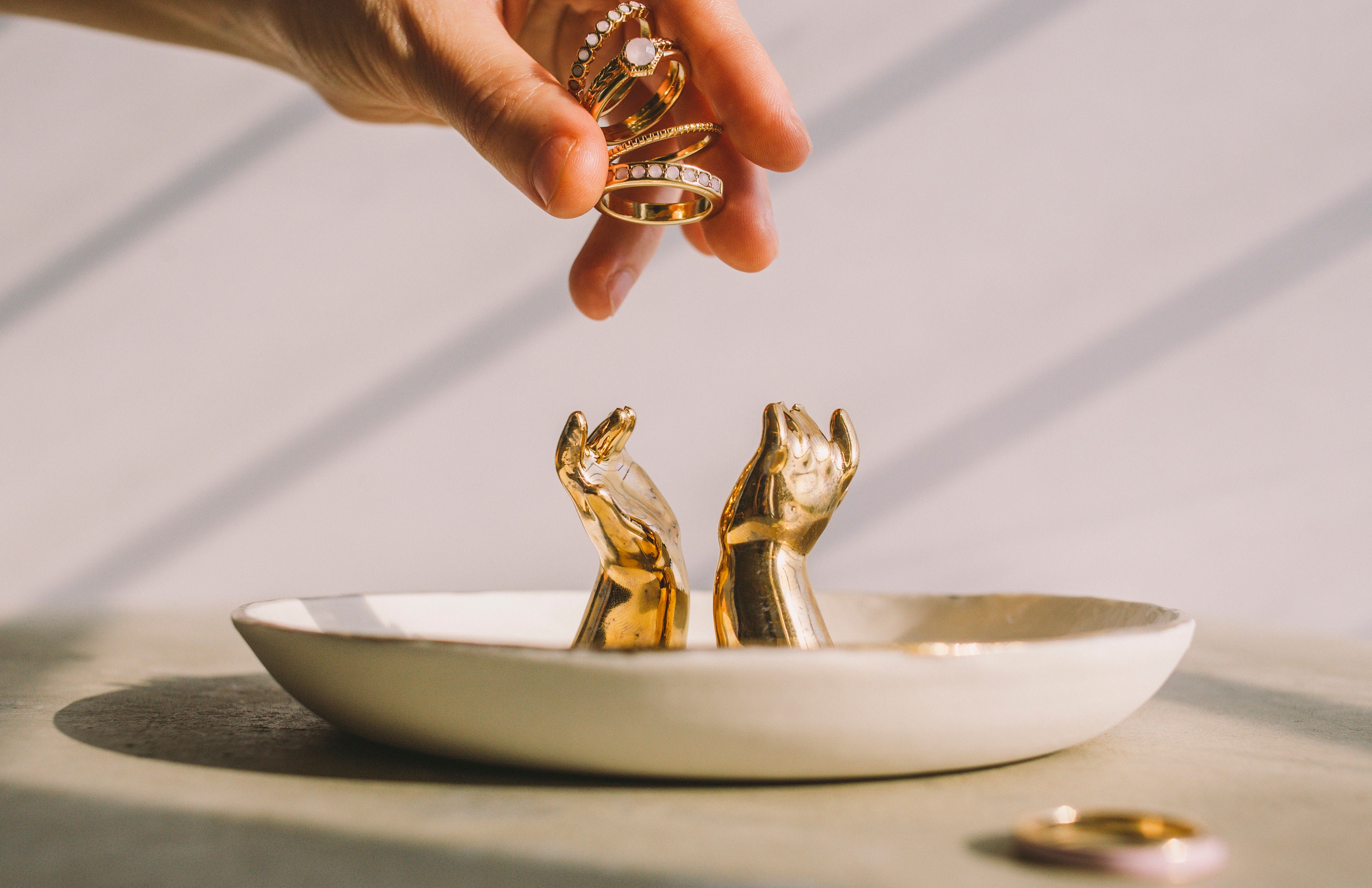 Ajoutez une touche tendance à votre organisation de bijoux avec cet adorable plateau en porcelaine sur le thème des animaux qui dispose de suffisamment d'espace pour garder toutes vos bagues. Finition brillante élégante : notre plateau à bijoux éléphant est méticuleusement poli pour un aspect doré brillant, ce qui en fait un décor idéal pour le salon et la chambre. nbeads 4-Tier Présentoir en Bois, Porte Boucle D'Oreille Porte-Bague Plateau tournant rond et dur pour bijoux, vitrine ... – Grandado Excellente idée cadeau : ce kit de support de bracelet en porcelaine de haute qualité est un cadeau attentionné pour votre fiancée, grand-mère, maman, papa, et d'autres proches pour la Saint-Valentin, la fête des mères, les anniversaires, les réunions, Noël, les pendaisons de crémaillère et autres occasions spéciales. Lampe Coucher De Soleil YiaMindful Organisateur De Bijoux - Présentoir De Bijoux Cadeau Femme Original Utile Support à bijoux pour plusieurs bagues : notre plateau à bijoux peut contenir vos bagues, bijoux et boucles d'oreilles dans un endroit de rangement sûr car le support de bague a assez d'espace pour contenir tous vos bijoux. Tient dans les petits espaces : ce plateau blanc fabriqué à la main avec un bord doré est un excellent économiseur d'espace qui va dans votre placard et vos tiroirs de chevet sans prendre beaucoup de place. Le plateau peut être utilisé pour les montres, bracelets et autres bijoux. SUPPORT À BIJOUX: Notre boîte à bijoux en porcelaine est un présentoir de bijoux parfait pour ranger vos colliers, bracelets et boucles d'oreilles.PORTE-BAGUE: Notre sculpture dorée en forme d'éléphant est idéale comme présentoir bagues.FINITION ÉLÉGANTE: Notre plateau de support de bijoux en porcelaine blanche avec uord doré est...