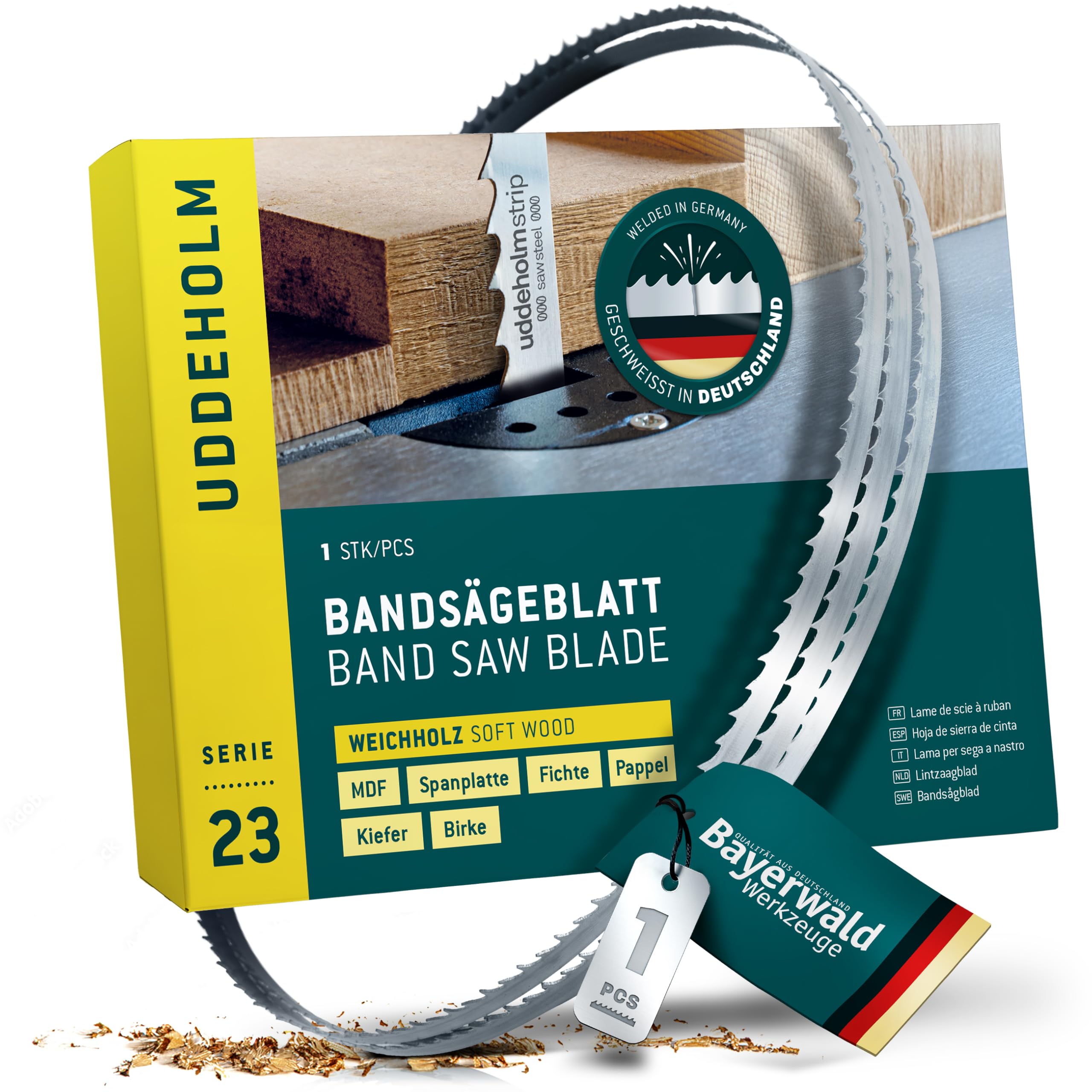 Bayerwald Uddeholm - Lame de scie à ruban trempée - 4318 x 10 x 0,6 x 6 mm - Pour tous les types de bois courants - Lame de scie compatible avec Felder FB 510, etc., Lame de scie Rubans de scie en acier spécial - acier de qualité supérieure soudé en Allemagne. Bayerwald Lame De Scie À Ruban Pour Métal 2480 X 27 X 0,9 X 6 10 Zpz Possibilité de scier des panneaux MDF, du pin, du hêtre, du Bois massif collé, du noyer et du cerisier. Lames De Scies Suédois Lame De Scie à Ruban Bayerwald Uddeholm - 1775 X 6 X 0.5 X 4 / Pour Tous Les Types De Bois Courants/bande De Scie Adaptée Aux Scies à Ruban Sur Mesure Longue durée de vie, même en cas d'utilisation intensive, grâce à une structure en acier très résistante. Lame de scie à ruban Bayerwald Uddeholm à pointes dentées trempées - 2955 x 15 x 0.5 x 6 / pour tous les types de bois courants/bande de scie adaptée aux scies... Cette lame pour scie à ruban a une longueur de 1425 mm, une largeur de 6 mm et une denture de 6 dents/pouce. Caractéristiques de cette lame de scie à ruban au... QUALITÄT AUS DEUTSCHLAND Bayerwald Werkzeuge