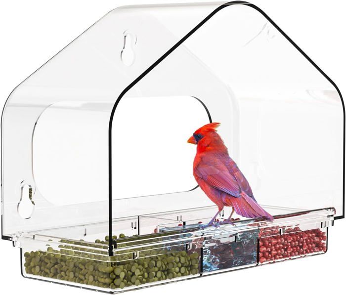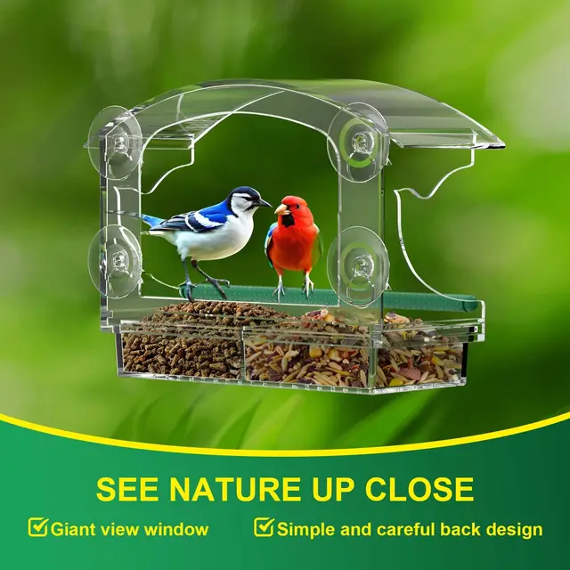 Ventouses haute puissance : les trois ventouses haute puissance, ce produit offre une prise sûre et robuste sur votre fenêtre, même dans des conditions météorologiques difficiles ; il est également simple à installer sur des fenêtres transparentes ou à déplacer vers de nouveaux endroits. BELLE VOUS Mangeoire Oiseaux Plastique Transparent (Lot de 2) - Nichoir Fenêtre avec visibilité claire : fabriquée en acrylique de haute qualité, cette mangeoire à oiseaux à ventouse est imperméable et résistante au froid, ainsi qu'aux températures élevées. Mangeoire Pour Oiseaux Transparente Mangeoire De Jardin à Oiseaux St Helens Transparente - En Acrylique Mangeoire Transparente Pour Fenêtre Facile à remplir et à nettoyer : cette mangeoire à oiseaux est conçue pour contenir une variété d'aliments pour oiseaux, y compris les graines, le blé, le maïs, les arachides, les graines de melon et les fruits. iBorn angeoire à oiseaux avec ventouses puissantes pour balcon pour... Légère et grande capacité de charge : fabriquée à partir de matériau acrylique léger pesant moins de 100 g, cette mangeoire à oiseaux de fenêtre dispose d'une capacité de charge impressionnante. Sa transparence cristalline offre une vue dégagée des oiseaux, vous permettant d'observer chaque mouvement de près, de profiter de leurs séances d'alimentation et d'apprécier la beauté de la nature. Maison à oiseaux avec toit : le toit de cette mangeoire à oiseaux est conçu pour protéger les graines de la pluie et de la neige, ce qui la rend idéale pour attirer les petites espèces d'oiseaux telles que les pinsons, les mésanges, les moineaux, les chardonnerets, etc.