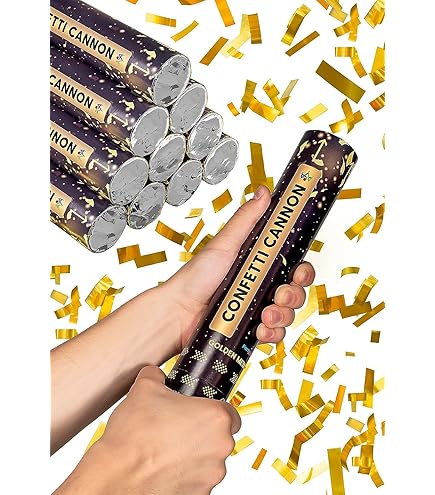 Canon à Confettis Rectangle Couleur Argent 40 Cm - Lot De 4 Lanceurs à Confettis à Tenir