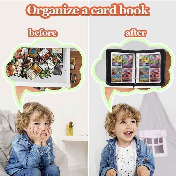 L'intérieur est fabriqué en polypropylène imperméable, tandis que le compartiment pour cartes est très transparent et permet une distinction facile Cadeau idéal : l'album de collection de cartes OBYCPIN est parfait pour les collectionneurs. Grâce au design à 3 anneaux, les cartes peuvent être ajoutées ou remplacées à tout moment Range Carte Pokemon Album De Cartes à Collectionner Pour Cartes à Collectionner - 50 Pages - 400 Poches Amovibles - Portable - Étanche - En Polyuréthane - Cadeau Idéal Pour Les Enfants Classeur Carte Pokemon ALBUM DE 540 cartes à collectionner avec fermeture éclair 30 pages portable é - EUR 63,66.À VENDRE! RIPZONE Peak - Chandail de sous-vêtement technique avec fermeture... En outre, une fermeture éclair latérale assure que vos précieuses cartes sont protégées contre la perte, les plis et les déchirures L'album de cartes à collectionner Lictin comprend 28 pochettes, un total de 18 emplacements pour cartes à l'avant et à l'arrière, peut contenir 504 cartes, une seule fente pour carte mesure 6,8 mm x 9,7 mm, le classeur de collection de cartes Lictin peut être parfaitement adapté, vous le méritez C'est une excellente idée de cadeau pour Noël, Pâques, le Nouvel An ou les anniversaires – cela vous fera certainement plaisir Utilisation polyvalente : ce porte-cartes est idéal pour collecter différents types de cartes, telles que Cartes à jouer, cartes bancaires, cartes de transport, timbres, petites photos et plus encore pour répondre à différents besoins Collection Cartes Jeu Album De Collection Cartes 440 Poches - Classeur Protège-Cartes Pour Yu-Gi-Oh, MTG, Pokémon - 55 Pages Cadeau Enfant Collectionneur