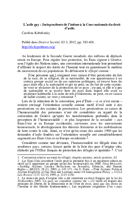 Textes de lois : l’asile - l'asile - Info droits étrangers I.-Les articles L. 723-3, L. 723-6, L. 723-7, L. 723-15, L. 723-16 et L. 744-6 du code de l'entrée et du séjour des étrangers et du droit d'asile, dans leur rédaction résultant de la présente loi, s'appliquent aux demandes d'asile présentées à compter du 20 juillet 2015 CESEDA 2024 Pdf Le Décodé - Des Sources Du Droit D'asile En Vigueur En France Accès Au Droit D'asile Le Droit D'asile Au Maroc 24 - 11-20 | Réfugié | Haut... La Cour nationale du droit d’asile (CNDA) a rendu ce 11 juillet 2024, un arrêt stipulant que « l’ensemble des femmes afghanes » ont vocation à obtenir le statut de réfugiées en raison de leur genre.