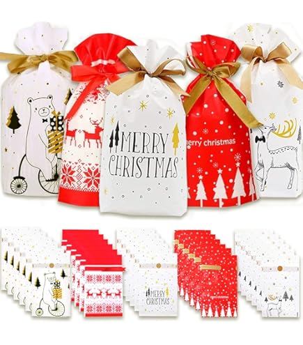 Emballez vos cadeaux avec style et praticité grâce à nos sacs-cadeaux de Noël de haute qualité avec cordon. Parfaits pour les sacs-cadeaux de Noël en famille, les sacs-cadeaux de Noël, les sacs à bonbons, les sacs à jouets, les sacs à friandises et les promotions de Noël. Sacs cadeaux joyeux noël 24 pièces/ensemble, sac à bonbons pour enfants, sac à cordon de serrage, paquet de lin de noël, porte-cadeaux de poche. 9,29€/lot Taille généreuse : Chaque sac-cadeau mesure environ 23 x 15 cm, offrant suffisamment d'espace pour emballer divers cadeaux. Cela permet de protéger les articles à l'intérieur et d'éviter les pertes. Commandez dès maintenant et faites de votre fête de Noël, de votre mariage ou de votre anniversaire un événement spécial ! Fabriqués en plastique de haute qualité, ces sacs-cadeaux sont beaux, légers et durables. Réutilisables et respectueux de l'environnement : Nos sacs-cadeaux sont robustes et durables, ce qui permet de les réutiliser. En utilisant ces sacs, vous contribuez à la réduction des déchets et à la préservation de l'environnement. Ce sac-cadeau de Noël mesure 28 * 21cm, c’est la taille parfaite pour organiser tous vos cadeaux de Noël. Que ce soit des petits cadeaux, des bonbons, du chocolat, des biscuits, des jouets ou des collations, ce sac-cadeau sera parfaitement adapté à vos besoins. De plus, ces sacs-cadeaux sont respectueux de l’environnement, fabriqués à partir d’une double couche de plastique de... Ils constituent une alternative écologique aux emballages jetables, contribuant ainsi à la réduction des déchets. Cadeau Noel Lot De 24 Sacs-cadeaux De Noël Avec Cordon,Sac Cadeau,Sachet Bonbon,Pochette Cadeau,Sacs De Fête De Haute Qualité Pour Emballage De Cadeaux, Bonbons Et Plus,Parfaits Pour Noël, Mariages Et Fêtes Emballage Cadeau Noel Nos sacs-cadeaux sont réutilisables et respectueux de l'environnement. Polyvalents, ces sacs sont parfaits pour emballer du pain, des biscuits, des bonbons, des pâtisseries, des collations, du pop-corn, des barres chocolatées, des friandises, et bien plus encore. Design pratique avec cordon de serrage : Chaque sac-cadeau de Noël est doté d'un cordon de serrage à l'ouverture, facilitant ainsi la fermeture et l'ouverture, tout en protégeant les articles à l'intérieur et en évitant les pertes. Ils sont suffisamment grands pour contenir différents objets, tout en restant pratiques et faciles à transporter. Lot de 24 Sacs-cadeaux de Noël avec cordon,Sac