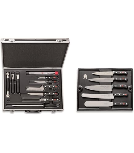 F. DESDE LA LUNA: TALLARINES A LOS TRES HONGOS La mallette de cuisson est parfaite pour ranger et transporter vos couteaux, grâce à l'insert magnétique, les lames de couteau restent bien fixées Mallette De Couteaux De Cuisine F. DICK Set De Couteaux Red Spirit Coffret Magnétique, 5 Couteaux Fusil 56 Hrc 47297692 Mallette Couteau De Cuisine 56° Rockwell (HRC) est le compromis parfait entre une longue tenue et un réaffûtage facile. Les couteaux de cuisine de la collection F. Dick Red Spirit allient solidité allemande et influences asiatiques. Ils attirent tout de suite l'œil avec leur manche rouge arrondi, inspiré des couteaux traditionnels asiatiques Set de couteau de chef & bloc de couteaux vide magnétique, 5-pcs. /10 La lame est en alliage X 55 Cr Mo V14., Chaque composant a une tâche spéciale: chrome (résistance à l'usure), molybdène (résistance à la corrosion), carbone (force) DICK Red Spirit 81173000 Set de couteaux (coffret magnétique, couteau de chef AJAX, couteau à pain, couteau à découper, couteau d'office, affûteur en acier, 56° HRC)