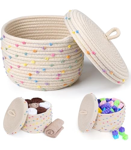 Dimensions : 30,5 x 22,9 x 10,2 cm. Décoration polyvalente : avec sa couleur marron clair neutre et sa construction tissée simple, ce panier complète une variété de designs d'intérieur et peut être utilisé pour le rangement ou la présentation. Marque: LWZkoCouleur: Style ACaractéristiques: ✿ Grande Capacité: Notre paniers en corde de coton a une grande capacité, la taille est de 28 x 28 cm / 11 x 11 pouces. Artisanat durable : les fibres de jute naturellement durables sont tissées à la main dans un panier robuste mais léger, parfait pour n'importe quelle pièce. Pour organiser de petits objets, jouets, poupées, cosmétiques, artisanat, vêtements, clés, téléphones portables, etc. - Peut être placé dans la chambre d... ✔Couleur neutre, matériau sain et design polyvalent, qui seront également un ajout unique à la décoration de votre maison. Paniers de Rangement en Corde de Coton Organisateur Panier Tissé... Panier De Rangement En Coton Goodpick Lot De 3 Petits Paniers – Panier De Rangeent En Corde De Panier Rangement Coton Tissé Blanc Kalakriti Panier à suspendre à la porte, 3 niveaux en jute et ✿ Soft Touch: Panier de rangement tissé ferme a un toucher doux, pas de rayures de collision, léger et élégant, parfait pour accueillir les vêtements de bébé et autres jouets en crèche. Ce sera un excellent panier à linge, un panier de couverture, un panier de jouets pour bébé à garder dans la chambre des enfants, la salle familiale. ✔Touche élégante, utilisez cette couverture de jardinière pour ajouter une touche de bon goût à votre plante d'intérieur et contribue à ajouter une touche moderne à votre maison. Finition de haute qualité : chaque panier est soigneusement inspecté et découpé et les bords sont soigneusement reliés pour durer pendant des années d'utilisation sans effilochage ou dommages.