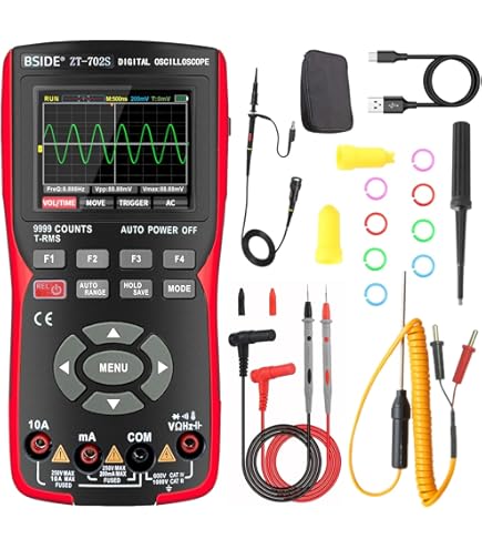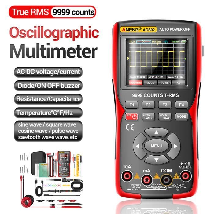 Spécification :Matériau : ABSPrincipaux paramètres de la machineModèle DSO TC3Écran couleur TFT 2,4 pouces, rétroéclairage LEDTension d'alimentation 1 x 803450 Batterie Li Polymères 1500mah (livrée avec batterie intégrée)Spécification de chargeUSB Type CSpécifications du supportSupport pliable monobloc Paramètres du mode oscilloscope numérique Taux d'échantillonnage en temps réel 10 MSa/s Bande passante analogique 500Khz Impédance d'entrée 1MO Méthode de couplage AC ou DC Plage de tension de test ±400V Sensibilité verticale 10mV-10V Plage de base de temps horizontale 1us-10s /Mode de déclenchement Auto, Normal, Unique Type de déclenchement Front montant ou front Gel de forme d'onde Oui Mesure automatique Oui Paramètres du mode de test des composants Description de la plage de classe Triode β supérieur à 10 inférieur à 600 Grossissement hfe, tension base émetteur Ube, lc/le, courant de coupure inverse collecteur émetteur lceo, lces, diode de protection chute de tension directe Uf Diode Chute de tension directe Chute de tension directe, capacité de jonction, courant de fuite inverse Diode de régulateur de tension 0,01-4,5 V (zone de test 1 2 3) Chute de tension directe, tension de claquage inverse 0,01-32 V (zone de test K A A) tension de claquage inverse Tube à effet de champ JFET Capacité de grille Cg, courant de drain ld à Vgs, chute de tension directe de la diode de protection Uf Capacité 25pF-100mF Valeur de capacité, facteur de perte Vloss Résistance 0,010-50MO Valeur de résistance Inductance 10uH -1000uH Inductance Value, DC Batterie 0., 1-4., 5V Valeur de tension, polarité positive et négative Tension d'entrée 0-40V Valeur de tension DS 18B20 0-85°C Température /DHT1 0-60°C/5-95% HumiditéParamètres du générateur Oscilloscope multimètre portable LCD multimètre numérique et Le DSO-TC3 dispose d'une batterie intégrée de 1 500 mAh avec laquelle vous pouvez utiliser l'appareil pendant 6 heures et il peut être chargé avec un chargeur USB-C. Ce multi-testeur est également doté d'un écran couleur TFT de 2,4 pouces Multimetre Oscilloscope Oscilloscope Numérique Testeur De Transistor Compteur Oscilloscope Portable Kit 3 En 1 Multimètre Miniature Inductance Capacité Résistance Dso Tc3 Testeur de transistor d'oscilloscope numérique TC3, Oscilloscope...