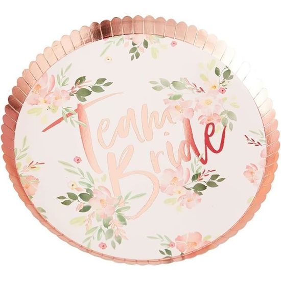 L'assiette en papier de couleur or rose à imprimé floral « Team Bride » est parfaite pour manger de délicieux gâteaux. Assiettes en carton fleurs pastel - Déco mariage botanique Description Prête pour un EVJF, un brunch ou un pique-nique trop stylé ? Ces assiettes en carton Ginger Ray avec imprimé floral sont parfaites ! Lot de 8 assiettes de 24cm, multicolores et super mignonnes. Jetables donc zéro vaisselle, mais avec un look sophistiqué qui impressionnera tes invités. Parfait pour une table décorée sur le thème fleuri, ou comme support pour des gâteaux et... Future Mariée Ginger Ray Lot De 8 Gobelets En Carton Pour Enterrement De Vie De Jeune Fille Rose Assiette Jetable Rose Chaque lot comprend 8 assiettes en carton. Parfaites pour un enterrement de vie de jeune fille, un brunch, un thé ou un pique-nique. Lot de 8 assiettes de 24cm de diamètre, en carton résistant et... Assurez-vous d'ajouter nos serviettes florales pour éviter tout déversement sur les tenues de fête. Assiettes florales or rose pour enterrement de vie de jeune fille. Chaque lot contient 8 assiettes florales mesurant : 24 cm (l) x 24 cm (H). Ginger Ray Lot de 8 assiettes en carton pour enterrement de vie de jeune fille avec inscription « Team Bride & Blush »