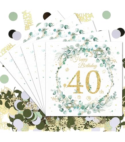 serviettes d'anniversaire Lot de 40 serviettes de table noires et dorées pour 40e Pour un anniversaire très tendance, optez pour ces magnifiques serviettes rose gold pour fêter ce bel âge avec vos proches. Son imprimé Hello 40 en rose gold, brillera tout le long de votre soirée. En combinaison avec ces serviettes, utilisez des ballons pour décorer votre salle d'anniversaire Serviettes en Papier Vert] Le produit contient 40 serviettes de fête en eucalyptus, chaque serviette mesure 33 cm x 33 cm une fois dépliée et 16,5 cm x... Design élégant : L'inscription Joyeux Anniversaire ajoutera une touche de sophistication et de festivité à votre décoration de table d'anniversaire. N'hésitez pas à découvrir la rubrique dédiée au à notre decoration anniversaire par AGE. Serviette De Table Vert Sauge Serviette Bapteme Fille Assiettes Jetables Florales Vintage Lot De 48 Assiettes Jetables Anniversaire Truly Scrumptious Serviette Papier Vert