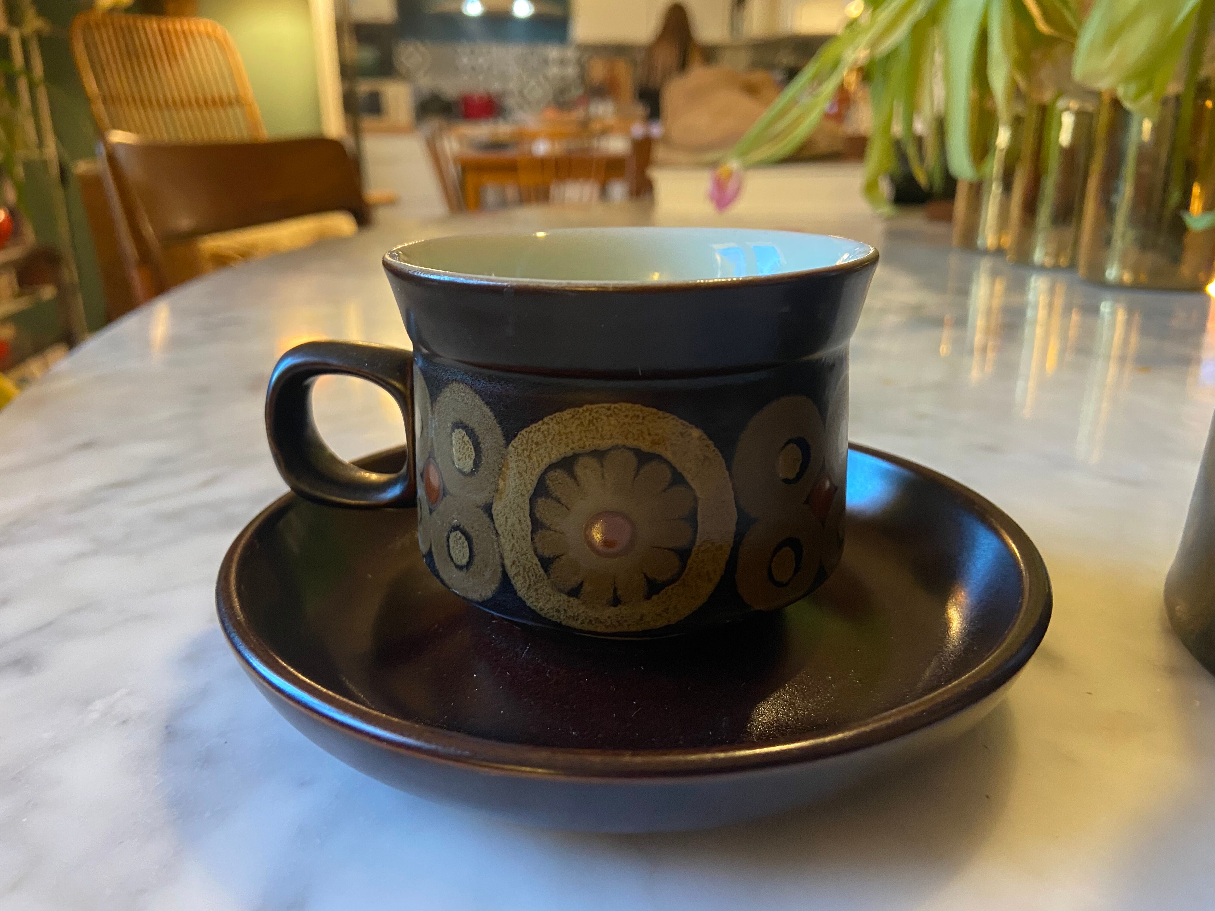 Avec une bande de couleur anthracite dramatique, de nombreux articles et des vernis réactifs texturés de couleur granit et quartz contemporains, ce produit crée un look décontracté, épuré et percutant qui fonctionne dans la maison et bien au-delà de la cuisine Lin par Denby Design inspiré Simples sans effort, les tons apaisants, neutres, d'avoine et les formes classiques simples créent un look qui fonctionne bien avec n'importe quel décor. Pratique et durable Le grès Denby peut être utilisé dans le four, le micro-ondes, le congélateur et le lave-vaisselle, ce qui rend cette gamme assez résistante pour le quotidien et assez superbe pour le meilleur. Tasse Kiln Blue à bords striés lot de 2 de Denby Brown Lot De 2 Tasses à Thé En Porcelaine Avec Soucoupes Et Cuillère - Tasse Cups And Saucers Passe au lave-vaisselle, au four, au micro-ondes et au congélateur Chaque soucoupe pèse 250 g, longueur : 15,5 cm, largeur : 15,5 cm, profondeur : 2 cm Fait partie de la promesse Denby de 10 ans et des collectionneurs Savamment émaillé pour éviter l'écaillage et améliorer la durabilité. Le lot de 2 tasses à thé et soucoupes en lin contient deux tasses à thé et deux soucoupes soigneusement fabriquées à la main, de la gamme élégante Linen de Denby Pottery. A QUANTITY OF DENBY DINNER AND TEAWARE TO INCLUDE A COFFEE POT, HOT... Parfait pour tout type d'intérieur Cette gamme sophistiquée est conçue pour se fondre parfaitement dans la maison et créer un look propre et épuré.