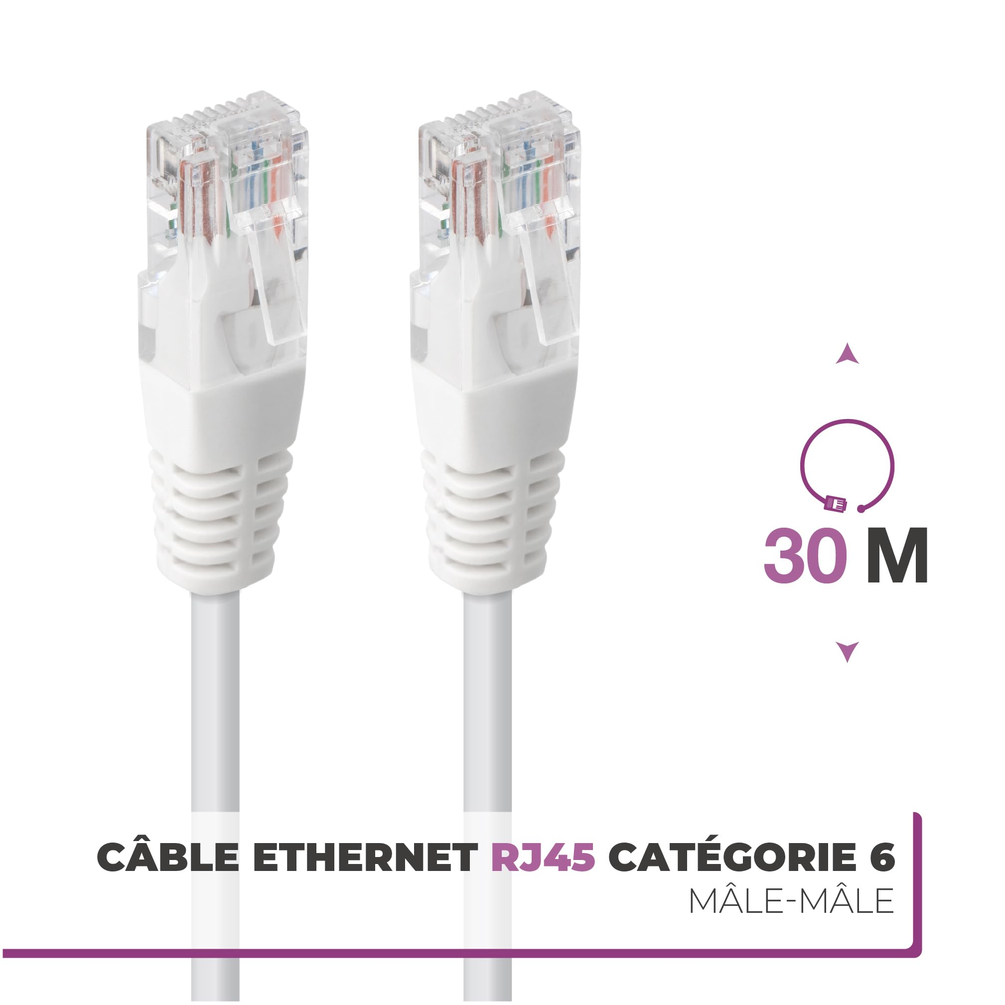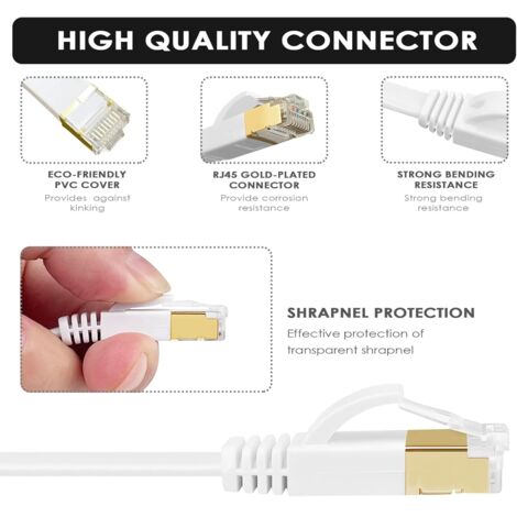 Le câble réseau plat Cat6 | Câble patch | 2 fiches RJ-45 | Fiche avec protection anti-torsion | Contacts plaqués or Un câble Ethernet est idéal pour une connexion rapide, stable et sécurisée sans les inconvénients du Wi-Fi. Pensez-y ! Regroupez vos déplacements et choisissez un magasin sur vos trajets quotidiens. *Prix éco-participation DEEE inclus (montant affiché sur chaque fiche produit) *Prix éco-mobilier inclus (montant affiché sur chaque fiche produit Le câble LAN plat est équipé d'un conducteur intérieur en cuivre de qualité supérieure - Isolation de qualité supérieure - Conforme à la norme RoHS - Décharge de traction 100 % moulée - Protection anti-torsion (très robuste grâce à la gaine anti-torsion pointue) Câble Ethernet 0.5m 1m 2m 3m 5m 10m 15m 20m 30m Plat CAT6 Câble RJ45 Patch LAN CAT 6 Câble Réseau Pour Ordinateur Routeur Ordinateur Portable Cable Rj45 30m 7 - Norme EIA/TIA 568B TBMax Cat 6 Câble Ethernet 3M Réseau Haut Débit RJ45 Câble LAN Gigabit Ethernet 1Gbps 250MHz Haut Débit UTP câble de Patch Compatible avec Routeur Modem Switch... Câble Ethernet 30m Cat 6 - Câble Réseau Plat - 1000 Mbps Conforme à la norme EIA/TIA 568B - Compatibilité descendante et ascendante garantie avec Cat., 5e/Cat., 6/Cat. Vitesse de transmission élevée grâce à de grandes fréquences de fonctionnement