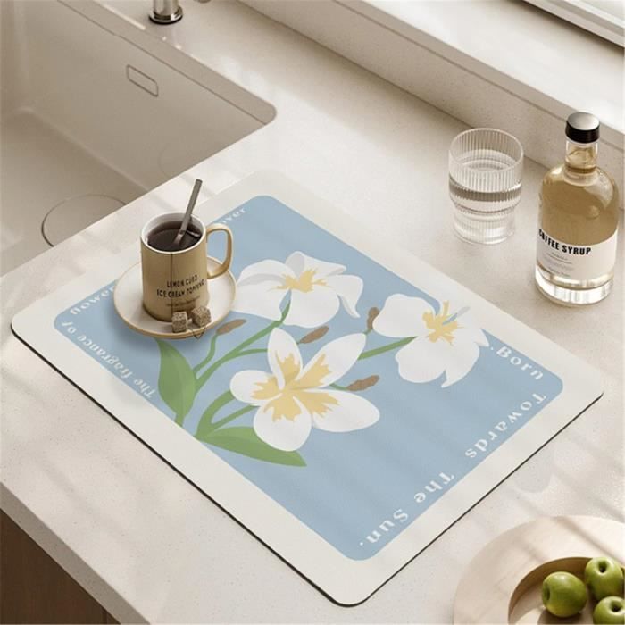 Tapis Égouttoir Vaisselle pour Comptoir de Cuisine Taille: 40 x 30cm , 40x50cm Matériel: Nanofibre + Fond Antidérapant en Caoutchouc Il suffit de le laver à l'eau courante ou de l'essuyer avec un chiffon humide, puis de le sécher à l'air libre., Lavable en machine. Vous pouvez l'essuyer avec une éponge ou un chiffon, ou vous pouvez le nettoyer au lave-vaisselle. Il peut absorber la majeure partie de l'eau en quelques secondes. Morbuy Tapis Égouttoir Machine à Café, Rétro Impression De Fleur Morbuy Tapis de Machine à Café, 30x40cm Tapis Égouttoir Absorbant Évier, Silicone Antidérapant Tapis Vaisselle, Egouttoir Séchage Rapide, Tapis Tapis Égouttoir Machine À Café, Café Impression Tapis De Séchage... Très absorbant - Fabriqué en terre de diatomées naturelle sûre avec une super capacité d'absorption d'eau et une capacité de séchage rapide. Magnifique tapis de cuisine super absorbant, égouttoir à vaisselle, sé Multifonction - vous pouvez le placer sous un égouttoir à vaisselle pour recueillir les gouttes et garder le plan de travail sec et propre, ou vous pouvez placer la vaisselle directement sur le tapis. Facile à nettoyer - Comparé aux tampons en caoutchouc, le tapis de séchage vaisselle est plus résistant à l'usure et à la saleté. Utilisation Polyvalente - Notre tapis de séchage de cuisine est également idéal comme tapis de buanderie, tapis d'alimentation pour animaux de compagnie, tapis de bureau, devant le tapis d'évier, etc