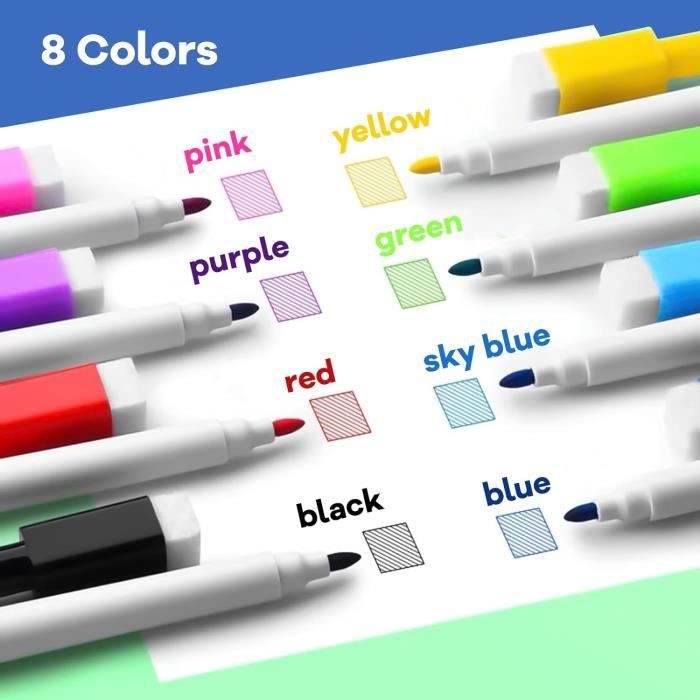 Marqueurs pour tableau blanc effaçables à sec avec effaceur, paq. de 4... Marqueur pour tableau blanc à une grande variété d'utilisations. Pointe biseautée pour une largeur de ligne variable durable réservoir. Ardoise Effacable OFFCUP Lot De 10 Marqueurs Tableau Blanc Magnétique Avec Capuchon Effaçable à Sec, Pour école, Bureau, Maison (Noir Feutre Veleda Effacable Ces feutres fins conviennent aux travaux précis, à la maison ou à l'école. Pointe biseautée pour une largeur de ligne variable , Durable réservoir Peut être essuyé à sec sans laisser de trace. Séchage rapide et faible odeur. Qualité supérieure Stylo marqueur effaçable pour tableau blanc, 24 pièces/ensemble, encre effaçable à sec, rechargeable, fournitures scolaires et de bureau, cadeau pour étudiant White Board Marker recharges acheter à prix bas - livraison gratuite Marqueur pour tableau blanc à une grande variété d'utilisations Le gros corps blanc fournit une prise en main confortable et un meilleur contrôle lors de l'écriture sur tableaux blancs, tout en incorporant un très grand réservoir d'encre. De faible odeur, ces feutres effaçables à sec sont fabriqués en France. Embout de capuchon en plastique résistant protège contre les dommages.