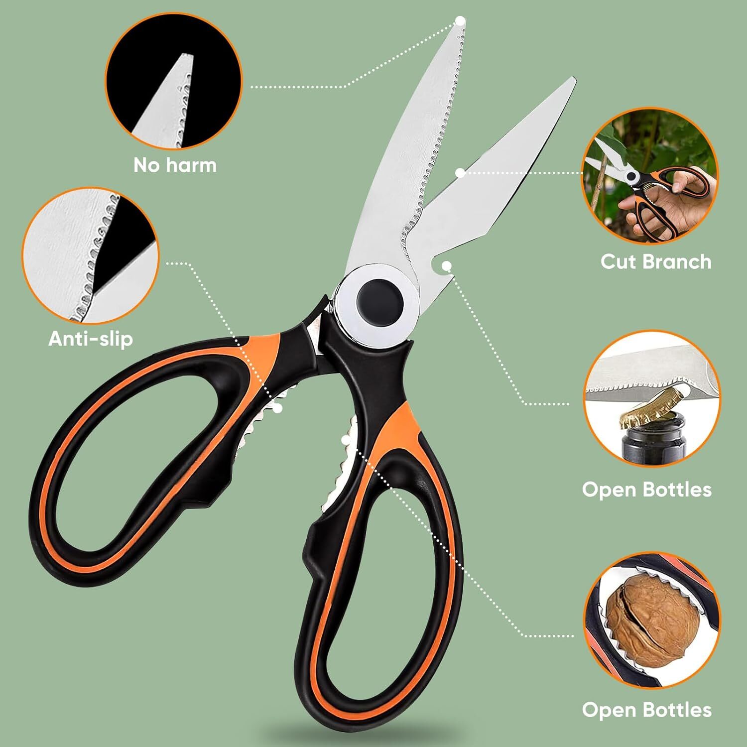 ☛️Acier inoxydable de première qualité 3Cr14 – Fabriqué en acier 3CR14, ce ciseaux de cuisine robuste offre d'excellentes performances en résistance à la rouille et à la corrosion. ☛️Double lame dentelée innovante : les petites stries dans une rangée assurent une prise ferme dans les aliments, évitant les glissements, même avec des repas humides. Coupez facilement les os, les oiseaux et les dindes. En outre, nous sommes là pour répondre à toutes vos questions et vous offrir une solution satisfaisante lors de l'utilisation. Ciseaux Multifonctionnels, Durables Il Est Fait De Ciseaux De Cuisine Ciseaux de cuisine premium : polyvalents et précis Poids : 114 g, dimensions : 20,5 x 9 cm. Avec housse de protection Très tranchantes, couper le poulet, la viande, les légumes, les herbes. Il est également recommandé de les laver à la main avec de l'eau et de les sécher immédiatement. Description du produit Ciseaux de coupe de cuisine, ciseaux multifonctionnels, ciseaux de cuisine premium avec housse de protection, acier inoxydable pour poulet, viande, légumes, herbes, BBQ. En outre, il raclette les écailles de poisson et hache les légumes, les fruits, les nouilles et même les pizzas. Les grosses dents sur la deuxième rangée de la lame facilitent l'élimination efficace des écailles de poissons. Ciseaux Cuisine Pack2 Ciseaux De Coupe Cuisine, nels, Ciseaux Ciseaux Multifonction Polyvalence dans vos mains ! Ciseaux De Cuisine Haut De Gamme, Ciseaux Multifonctionnels Démontables... Ciseaux de cuisine premium ultra-tranchants et multifonctionnels pour un travail efficace ☛️Ciseaux de cuisine polyvalents : notre ustensile est parfait pour toutes les tâches culinaires. Sécurité et confort garantis pour les deux utilisateurs Les grandes dents éliminent efficacement les écailles de poisson. Coupe poulet, viande, légumes, herbes et BBQ. Oubliez les planches et hachoirs, profitez d'un maximum de confort dans votre cuisine.