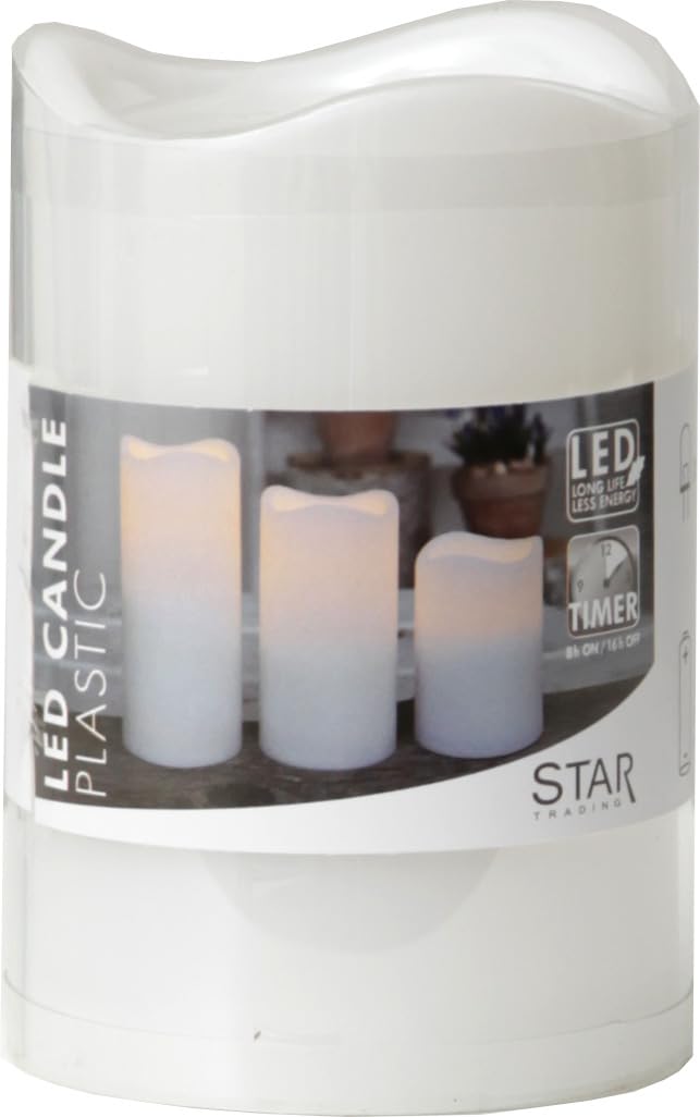 Le scintillement réaliste de la bougie d'extérieur à LED crée une atmosphère chaleureuse à la tombée de la nuit dans n'importe quel jardin, sur n'importe quelle terrasse ou balcon. Durch eine Timer-Funktion schaltet sich die Kerze nach 6 Stunden automatisch aus und nach 18 Stunden wieder ein (nicht programmierbar). Diese LED-Kerze erhalten... Après environ 6 heures, la lumière s'éteint. Mica LED Kerze Grün, Warm Weiss, Batteriebetrieben Mit Timer 10 X 7,5 Détails techniques : - Matériau : plastique - Convient pour une utilisation en extérieur - Couleur : blanc - Couleur de la lumière : ambre - Hauteur : environ 11,5cm - Diamètre : environ 7,5 cm - Éclairage : 1x LED - imite une flamme naturelle (effet de scintillement) - Alimentation : 3x AAA (non inclus) - Interrupteur avec 3 fonctions au bas de la bougie : ON - OFF - TIMER - Fonction minuterie : 6 heures de marche, 18 heures d'arrêt (automatique) - toutes les données selon le fabricant für den Außenbereich geeignet - Farbe: elfenbein - Leuchtfarbe: amber - Höhe: ca. 11,5cm - Durchmesser: ca. 7,5cm - Leuchtmittel: 1x LED - imitiert eine... Deluxe Homeart LED-Kerze MIA Deluxe für Außen flackernd H: 12,5cm D: 7 Il nécessite 3x piles AAA pour son fonctionnement. Grâce à la fonction de minuterie intégrée, vous pouvez déterminer quand la lumière des bougies doit briller.