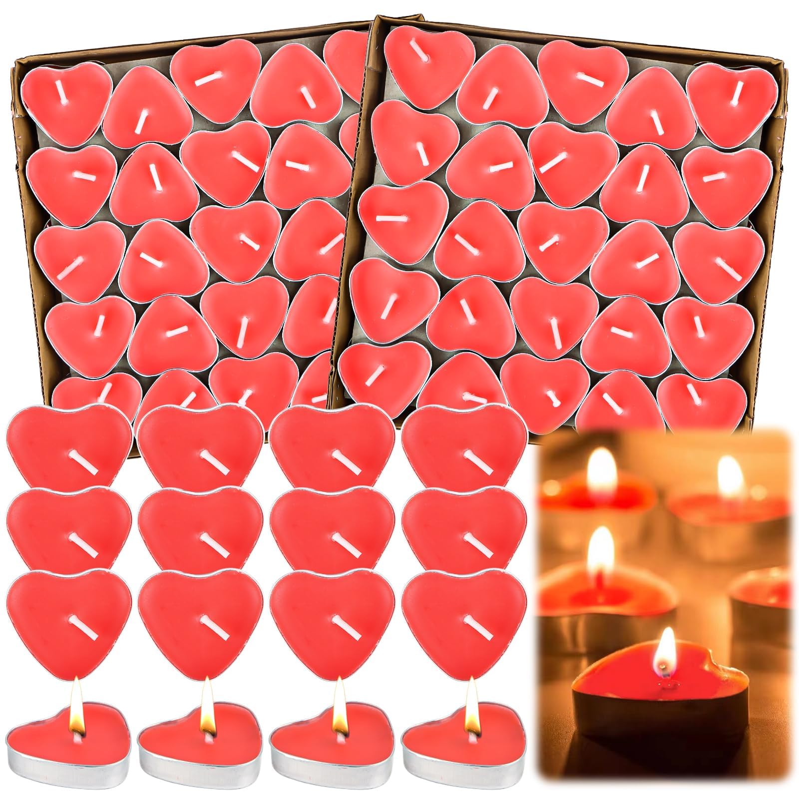 💕Cire respectueuse de l'environnement : fabriquée en cire de paraffine et en coton bio sans plomb, sans fumée et non toxique, avec une meilleure odeur. 💕Décoration de bougie : la bougie chauffe-plat en forme de cœur est pratique à utiliser, peut assurer une longue durée de combustion de 1 heure ou plus. Les bougies décoratives romantiques sont en forme de cœur, petites et légères, faciles à utiliser, ce qui en fait un excellent ajout à votre décoration intérieure. Lot de 50 bougies chauffe-plat Profitez d'une flamme propre, sans fumée et vacillante. Temps de combustion : 1 à 1,5 heures. Et diffusez la lumière de clarté. Et sa lumière douce peut créer un environnement romantique et chaleureux pour vous, ce qui est un bon cadeau. 💕Polyvalent : ces bougies chauffe-plat sont très adaptées à toutes vos occasions et célébrations spéciales. Qu'il s'agisse d'un mariage, d'un rendez-vous, d'une fête ou d'une fête de famille, elle est douce et affectueuse. Bougies Chauffe-Plat Longue Durée – Lot De 50 – 4 Heures De Combustion – Non Parfumées – Cire... Très approprié pour les banquets de mariage, les anniversaires, les cadeaux de fête, les décorations de table, les décorations de maison, les piscines, les urgences, les célébrations, etc. Bougie Coeur Rouge Lot De 50 Bougies Chauffe-Plat En Forme De Cœur - Amour Romantique Deco St Valentin Commerce 💕Ensemble de bougies décoratives : le lot de bougies comprend 50 bougies à 2 étages avec 25 bougies chacune, de sorte que vous pouvez utiliser autant de bougies que vous le souhaitez. Idéal pour les faveurs de mariage, les fêtes d'anniversaire, les décorations de table, les décorations de maison, les piscines, les urgences, les décorations de fête. Lorsque votre famille et vos invités arrivent, veuillez leur donner une surprise. Dimensions : environ 3,8 x 3,4 x 1 cm., Contenu : 50 bougies chauffe-plat. Bougies Chauffe-Plat Longue Durée – Lot De 50 – 4 Heures De Combustion – Non Parfumées – Cire