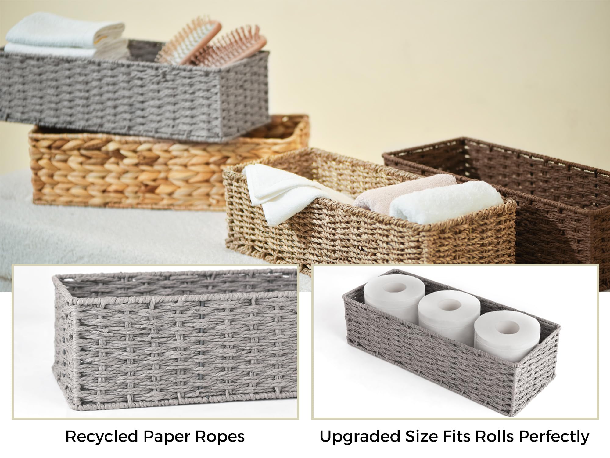 Merci de soutenir nos produits, si vous avez des commentaires sur les produits, n'hésitez pas à nous contacter. Contenu : Lot de 2 paniers de rangement. Les côtés surélevés gardent les articles contenus. Essayez-le sur votre bureau pour ranger stylos, crayons, ruban adhésif, ciseaux et autres fournitures IZ Nous aspirons à concrétiser nos idées et à apporter la même joie à nos clients. C'est donc un cadeau parfait qui est entièrement fait à la main., 2., Cadeaux créatifs : lorsque vous ne savez pas quoi offrir en cadeau, ce sera une excellente idée. Construits avec une corde en papier de haute qualité, ces paniers sont robustes mais légers, équipés de poignées pour un transport facile, offrant une valeur... Il sera la touche finale parfaite à votre intérieur., 3., Cubes de rangement multi-usages : ce panier de rangement peut non seulement être utilisé dans votre salle de bain, mais peut également être utilisé dans le salon, la chambre d'amis, la cuisine, le bureau, etc. Vos amis ou votre famille vont absolument adorer ce cadeau créatif. Chaque nœud prend beaucoup de temps à tisser nos travailleurs. Design fin permettant à ce panier d'être facilement rangé dans les armoires ou sur les dessus de commode. Panier de rangement en osier, 3 pièces, paniers d'étagère en corde de papier tissé à la main Panier Rond Avant Premiere DUOER Lot De 2 Paniers De Rangement En Osier Avec Poignée - Bacs De Rangement Décoratifs Pour Comptoir De Papier Toilette - Panier De Rangement Pour Réservoir De Toilette Panier De Rangement Léger Matériau : corde en papier, bois naturel, cadre en fer Idée cadeau : Cadeau de déménagement, cadeau de fête des mères, cadeau de Saint-Valentin, cadeau de commémoration, cadeau de mariage, cadeau de Noël, cadeau de Nouvel An, 1., Excellent panier de rangement fait à la main : ces bacs de rangement sont tous faits à la main avec une corde en papier personnalisée.