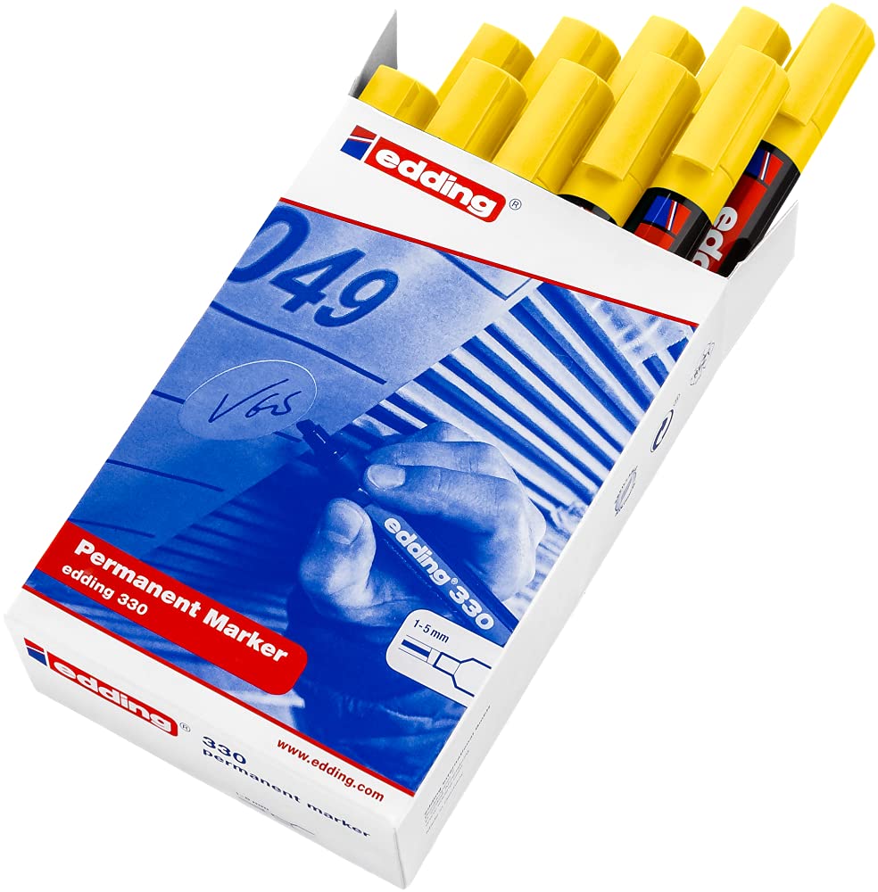edding Marqueur permanent 3300 - Noir - 1 stylo - Pointe biseautée 1-5 mm - Marqueurs permanents à séchage rapide - Imperméables - Anti-taches - Pour carton, plastique, bois, métal, tissu - Marqueurs Son encre sèche rapidement et résiste à l’eau et à l’abrasion. Encre inodore, permanente · Rechargeable · Avec pointe biseautée interchangeable · Séchage rapide, résistant à l'abrasion · Résistant à la lumière · Ineffaçable et résistante à l'eau · Sans ajout de toluène-xylène, indiqué pour le marquage et le coloriage de presque tous les matériaux, même le métal, le verre et le... Couleur du corps : blanc. edding 3300-10S 3300 Permanent - nachfüllbar 1 - 5 mm Box mit 10 Farben... Marqueur Indélébile Noir Lot De 4 Marqueurs Permanents Edding Edding 300 Rechargeables Marqueur Couleur Edding Lot de 3300 marqueurs permanents rechargeables 15 mm, 1 5 mm, 2 noirs, 2 noms de l'article : marqueurs permanents edding 3300., Couleur du corps : blanc. Matériau du corps : aluminium.