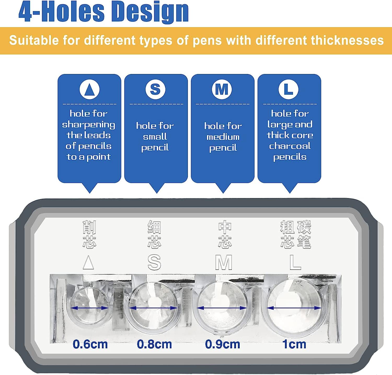 Améliorez vos travaux de dessin et de menuiserie avec ce taille-crayon transparent polyvalent à 4 trous. Design polyvalent : dispose de 4 trous différents pour accueillir différents types de crayons, y compris le fusain, le charpentier et les crayons d'artiste Le corps transparent vous permet de surveiller la progression de l'affûtage et de savoir exactement quand vider les copeaux. La pointe de 45mm permet de marquer dans les trous profonds et les endroits difficiles d'accès. Le mandrin en alliage d'aluminium et la poignée en caoutchouc... Magasinez 1pc à pointe longue avec couvercle, outil de préparation le 4-trous pour dessin et et graphite, fournitures scolaires multifonctionnelles tournées... Taille Crayon école 1 Taille-crayon Transparent à 4 Trous En Plastique à Pointe Longue Taille Crayon Sur Culture Le design à pointe longue permet un affûtage précis, vous donnant la pointe parfaite pour des croquis ou des marquages détaillés. confusion Persistant Étranger un taille crayon en anglais Humble Amoureux Hypoth Longue capacité de pointe : spécialement conçu pour créer des pointes précises et étendues, idéales pour les croquis détaillés et le dessin professionnel Que vous soyez au bureau, à l'école ou à l'atelier, ce taille-crayon en plastique durable aide à maintenir vos crayons en parfait état. Utilisations multiples : parfait pour le bureau, l'école, le studio d'art et les environnements d'atelier avec sa fonctionnalité polyvalente