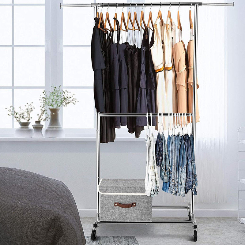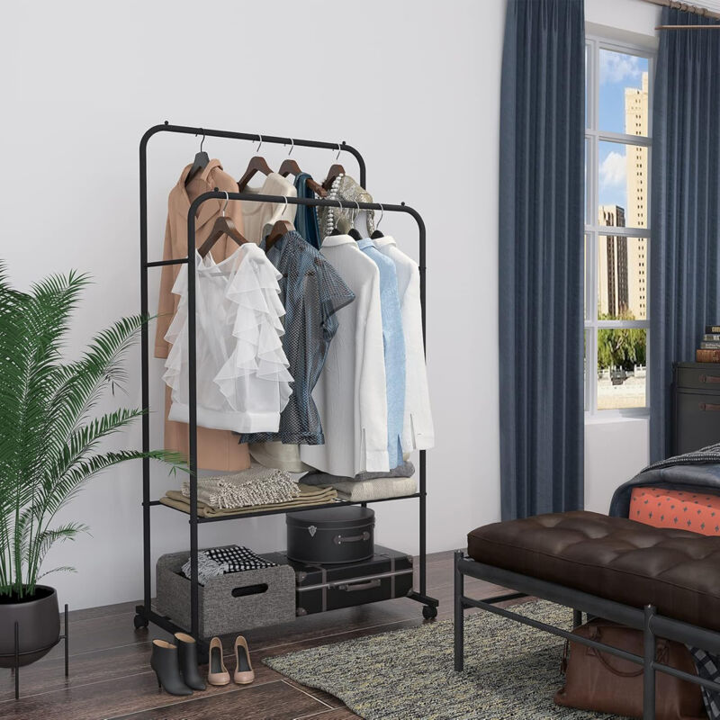 Profitez de plus d'espace : cet âne à vêtements à roulettes dispose de deux barres de suspension, d'une étagère supérieure et d'une étagère inférieure, offrant un grand espace de rangement pour les vêtements, chaussures, boîtes ou accessoires, assurant une présentation parfaite. Facile à assembler et à ajuster : la barre de suspension centrale dispose d'un système de verrouillage à manchon coulissant, ce qui facilite son montage et son réglage. Robuste et durable : cet âne à vêtements robuste est fabriqué en acier de 25,5 mm de diamètre, capable de supporter jusqu'à 300 livres sans effort. Les vêtements longs et courts sont suspendus en catégories, et les hauts et les pantalons sont disposés séparément pour un rangement plus ordonné. Roues pivotantes verrouillables : Le portant est de type mobile, équipé de 6 roues universelles, ce qui le rend plus pratique à déplacer Rebrilliant Portant à vêtements roulant avec housse, support à... Ytseazn-Âne À Roulettes,2 Barres Pour Suspendre ... - Rakuten Les barres de suspension permettent aux vêtements quotidiens ou saisonniers d'être toujours à portée de main. Portant à Vêtements avec Roulettes, Porte-Manteau avec Étagère, Barre simple, Marron Rustique et Noir d'Encre Il vous suffit d'installer les clips et de faire glisser l'étagère vers le bas jusqu'à ce que les quatre manchons soient fermement fixés. Mobile ou fixe : l'âne à vêtements à roulettes Uptyia est livré avec quatre roues, dont deux verrouillables. Cette polyvalence vous permet de régler et d'utiliser l'âne à vêtements partout où vous en avez le plus besoin.