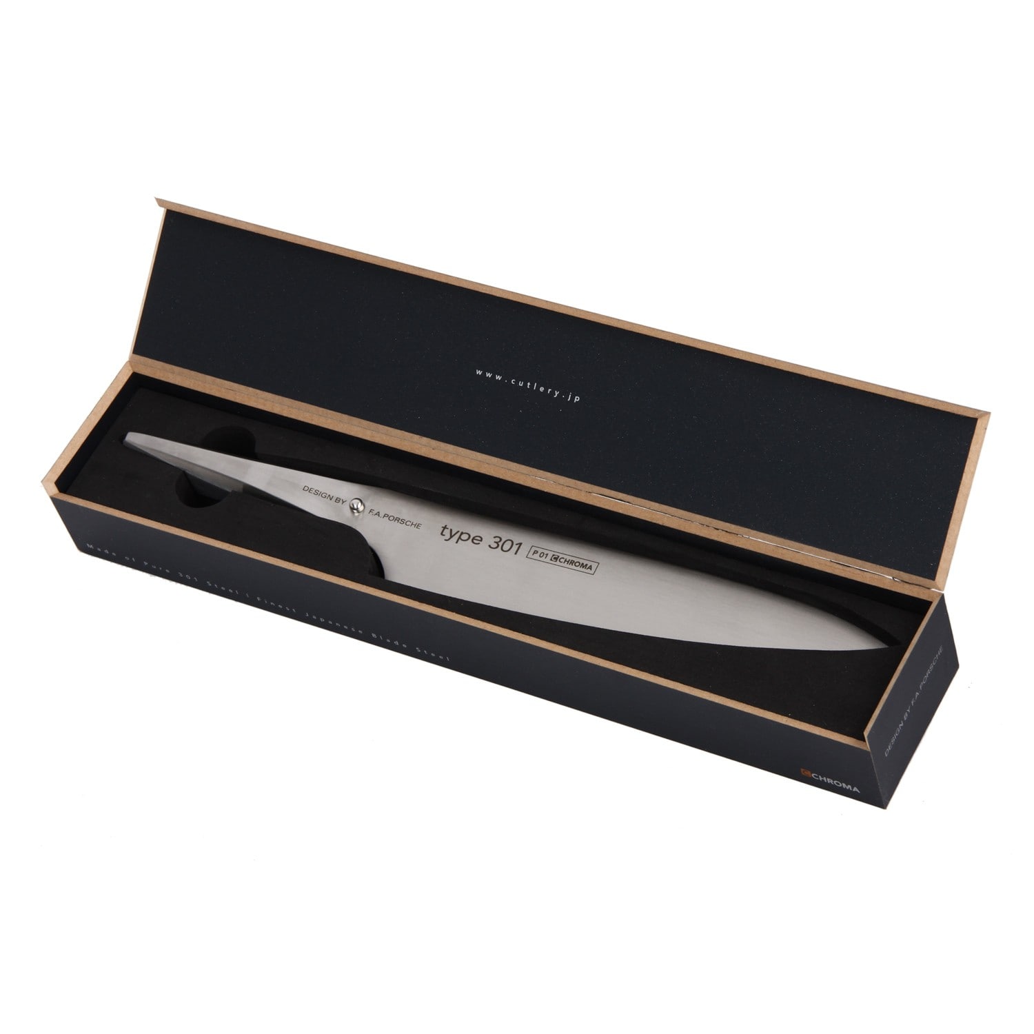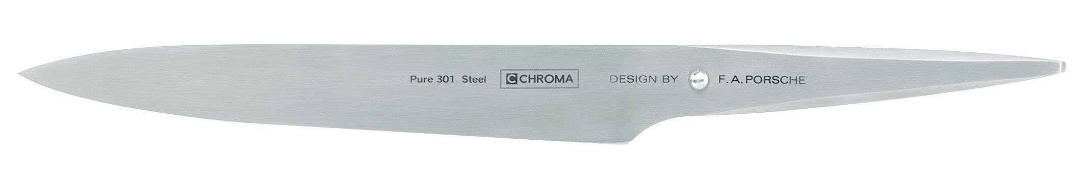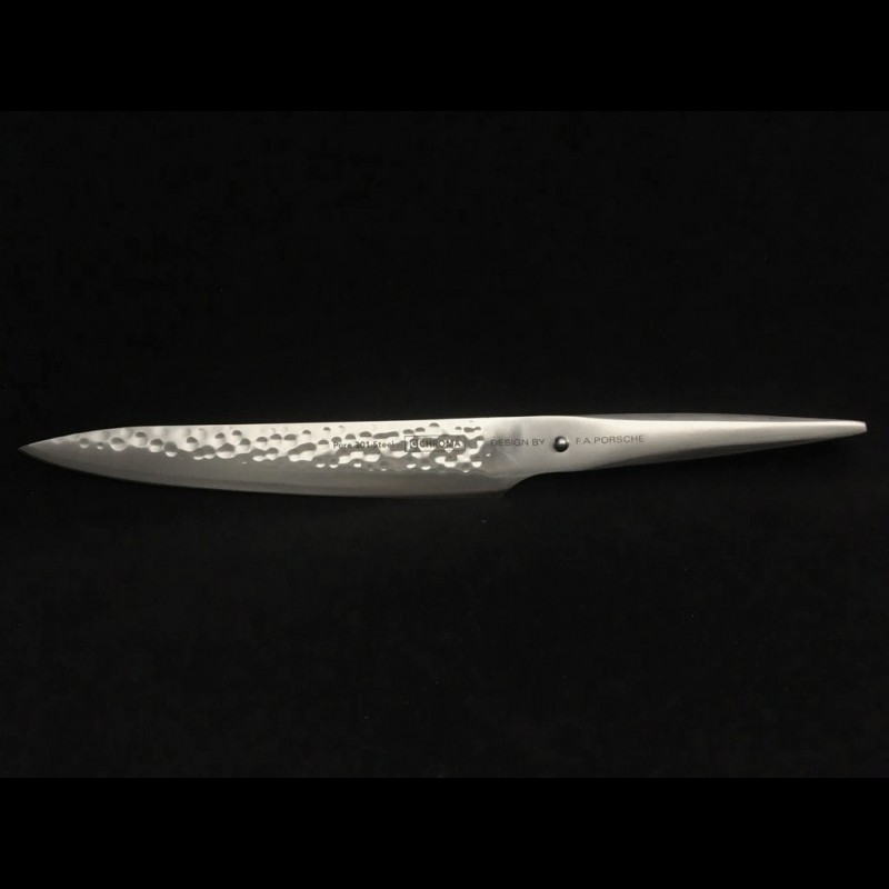 Dotes de manches en acier inoxydable 18/10 a finition martelee (HM), ces couteaux possedent une lame monobloc d`une nettete exceptionnelle, taillee dans de l`acier 301 pur. Des chefs de renom ont apporte leur expertise lors de leur developpement Le couteau de cuisine Chroma type 301 Porsche type 301 à finition martelée est conçu pour les aliments glissants, la chouette et la poisson. Porsche est fabriqué en acier inoxydable 18/10 et la lame est en acier japonais 301 de haute qualité. Coffret couteau et fourchette à viande Chroma Type 301 Porsche - Edélices Couteau Porsche 301 Couteau Type 301 Design By F.A. Porsche - Couteau à Légumes 15 Cm Porsche 301 Design Version martelée : martelage de surface du plus bel effet, ayant en plus des propriétés anti-adhérentes afin que les aliments n'adhèrent plus aux lames lors des découpes. Perle tactile prévenant de la proximité du tranchant Manche ergonomique en inox, retour de lame incurvé pour un meilleur confort Lame en acier japonais gamme Type 301 à haut taux de carbone. Le cutter Chroma est extrêmement tranchant et tient le bord pendant très longtemps afin que vous puissiez profiter plus longtemps de votre nourriture et de votre sharpening en moins de temps. Couteau à découper, longueur de lame 19,3 cm : pour découper les gigots et rôtis, mais aussi faire de fines tranche de jambon et des carpaccios. Livré dans un... La poignée du type 301 de F., A.