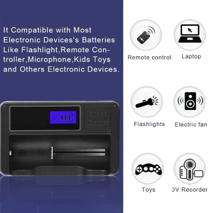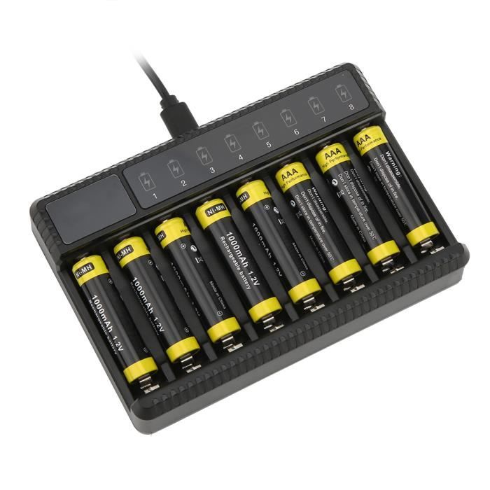 [Fonctionnalités deavancées] – S'éteint automatiquement en cas de surcharge, de décharge excessive ou de court-circuit pour protéger la longévité des batteries et du chargeur. [Conception USB pratique] – Branchez-le facilement sur divers ports USB pour le chargement, y compris les chargeurs de téléphone portable, les banques d'alimentation et les ordinateurs. Chargeur de batterie - FDIT - SEIVI - Universel - LCD - Portable Noir Protection avancée, chargeur rechargeable AA et AAA, fermeture automatique en cas de surcharge, de décharge excessive ou de court-circuit détecté pour éviter la surchauffe ou l'endommagement de la batterie et prolonger la durée de vie de la batterie rechargeable et du chargeur lui-même qui nécessitent des piles AA ou AAA. EJ.life Chargeur De Batterie à Quatre Emplacements SEIVI PC Intelligent chargeurs, banques d'alimentation et ordinateurs. Spécifications :Condition : 100 % neufType d'article : chargeur de batterieMarque : SEIVI Matériau : PCCouleur : NoirBatterie adaptée : Ni-MH/NiCad : AA AAAEntrée : 5 V 2 ASortie : 1,48 V 0,6 A*8 Poids : Environ., 133 gTaille : env. [Chargeur de batterie Aa/aaa unique] – Chargez efficacement 1 à 8 piles AA ou AAA Ni-MH indépendamment dans 8 emplacements. Chargeur de batterie POWERKAN N8 AA/AAA NiMH, 8 fentes de charge LED ... Chargeur de piles rechargeables Ni-MH/Ni-CD AA/AAA 1.2V avec câble USB-C. DH...