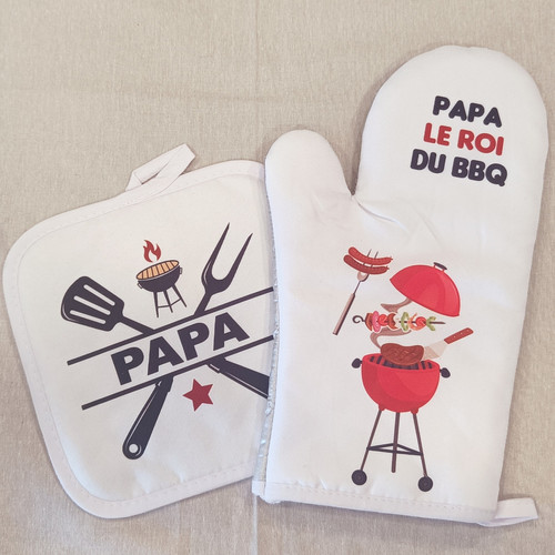 Gant de cuisine blanc pour droitier imprimé 17 x 27 cm. Adapté pour four ou barbecue. Gant Cuisine Manique Droite De Cuisine Le Meilleur Papa Du Monde Et De L'univers- Cadeau Papa Gants Barbecue Gant Cuisine Set De Cuisine Gant De Cuisine - Manique BISTROT Rouge Paprika Gants De Cuisine Le set de cuisine de la collection "BISTROT" en coton à carreaux tissé teint, de coloris rouge paprika, évoque l'atmosphère chaleureuse des bistros français, alliant style rustique et fonctionnalité. Lot De 2 Gant De Cuisine Anti Chaleur Manique De Pot Carré,Maniques En... Surprenez votre Papa / Papy chef avec cet ensemble gant et manique, alliant style et praticité, pour l’accompagner dans toutes ses créations culinaires, avec une touche spéciale pour la fête des pères