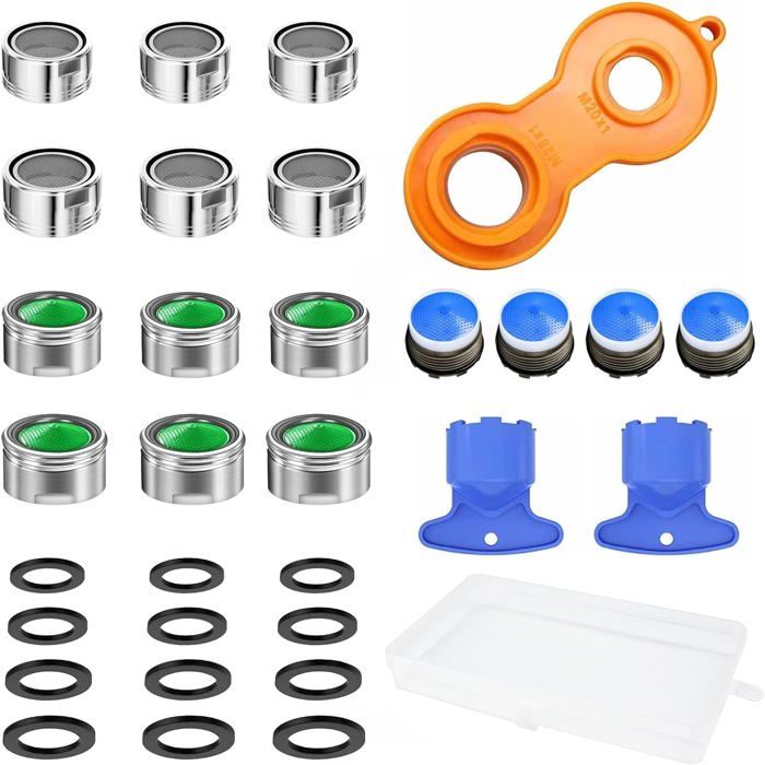 Contenu de la livraison : lot de 6 mousseurs à lait diamètre extérieur : 24 mm, 6 joints et 1 clé chromée. Mousseur Pour Robinet Régulateur De Jet M24 À Économie D'Eau - En Acier Inoxydable Et Abs - Haute Technologie - Anti Mousseur Robinet Cuisine Matériau de haute qualité : les économiseurs d'eau de robinet sont fabriqués en cuivre de haute qualité avec finition chromée. 6 Pièces Aérateur Robinet, Brise-Jet Robinet M16 Aérateur Robinet De Filetage, Filtres Robinets... Anti-éclaboussures et réduction du bruit : la conception parfaite du flux d'air dans le régulateur de jet du robinet, la partie creuse de l'élément filtrant est mélangée à l'air et le débit d'eau est doux, l'impact est réduit, la colonne d'eau tamponnée est uniforme et la colonne d'eau est verticale pour éviter les éclaboussures d'eau Toute l'inspiration mode et les dernières tendances sont en ligne sur SHEIN. XPOOP 6 Pièces Filtres pour Robinets, Aérateurs, Buses de Mélange avec Vous pouvez les utiliser en toute sécurité Peut être utilisé pour filtrer l'eau et réduire les éclaboussures