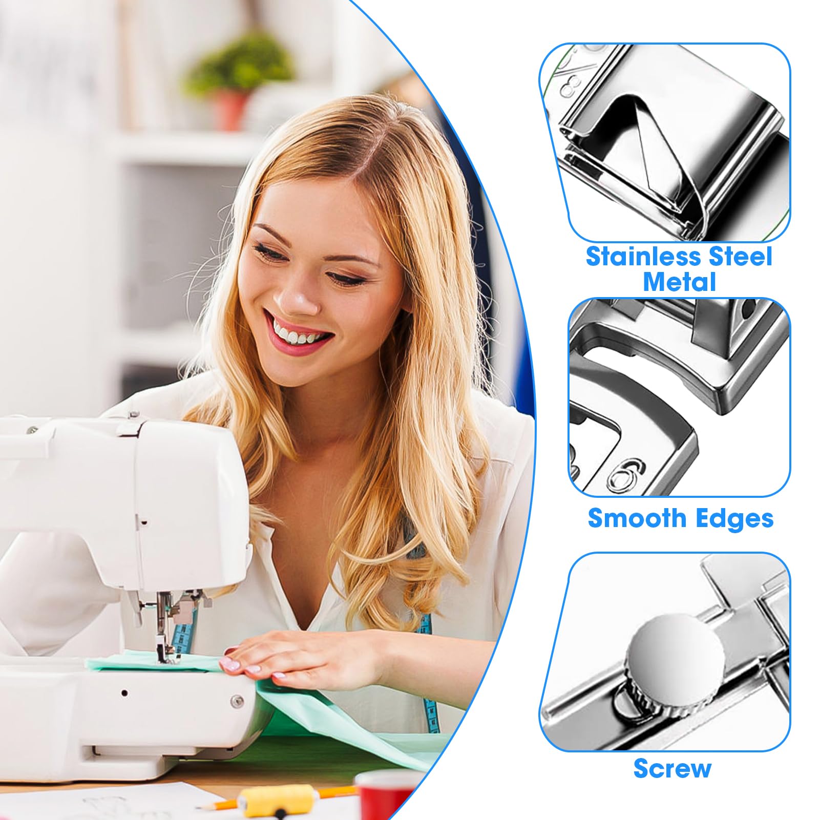 Il est très plat lorsqu'il est relevé, ne glisse pas et est facile à utiliser., 2., Design à fond plat : design à fond plat, traitement plus fluide, meilleure utilisation de matériaux fins, pratique et rapide à utiliser, et performances stables., 3., Matériau en acier : le pied de l'ourlet à défilement est fabriqué en acier, qui est solide et résistant à la corrosion, de finition soignée, brillant et peut être utilisé pendant une longue période., 4., Facile à installer : facile à installer et facile à utiliser, c'est bon remplacement de pied pour les pieds presseurs endommagés ou pour améliorer votre machine à coudre., 5., Portable : le pied de couture de cette machine à coudre est de taille raisonnable et léger, ce qui le rend facile à ranger et à transporter. Portable : le pied de couture de cette machine à coudre est de taille raisonnable et léger, ce qui le rend facile à ranger et à transporter. Pied-de-biche, Pied de Presse à 3 Plis Accessoire pour Machine à Pratiquement portable] Compact et léger, ce pied de machine à coudre est facile à ranger et à transporter, parfait pour les projets de couture à la maison ou en déplacement Facile à installer : facile à installer et à utiliser, c'est bon remplacement de pied pour les pieds presseurs endommagés ou pour améliorer votre machine à coudre. Pieds Pour Ourlets Roulés Pied à Ourlet Roulé 3 Pièces Ourlet Roulé Pied Biais Ruban Liant Pied Pied Ourlet Roulé Spécification du produit : 3 piècesUtilisation du produit : industrielChamp d'utilisation : la plupart des machines à coudre à plat industriellesTaille : env. Il est très plat lorsqu'il est relevé, ne glisse pas et est facile à utiliser. Forme d'arc : le pied-de-biche pour ourlet roulé a la forme d' arc, qui peut être roulé en forme d'arc. YOSOO Pied-de-biche pour ourlet roulé Pied-de-biche à ourlet roulé 4/8...