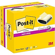 POST-IT Bloc cube Super Sticky 270 feuilles Jaune 76 x 76 mm - Acheter... Description du produit Super Sticky : l'adhésif renforcé qui colle plus longtemps et multi-surfaces. 60% d'adhésif issu de ressources renouvelables obtenu à partir d'une plante à croissance annuelle. Post It Noel Post-it Dévidoir PRO, Blanc Post-it Z-Notes Super Sticky, 12 Blocs, 76 Mm X 76 Mm, 90 Feuilles Par Bloc - Feuilles Autocollantes Pour Prise De Notes, Listes De Tâches Et Rappel Notes Autocollantes Les notes sortent une par une : prenez une note, la suivante apparaît. Fabriquée à 100% à partir de papier certifié PEFC , Garantie : Les notes Post-it® Super Sticky Z-Notes disposent d'un adhésif puissant qui colle plus solidement aux surfaces que la plupart des autres notes. Rechargez n'importe quel dévidoir pour Z-Notes grâce à ces 12 blocs de Post-it® Z-Notes Super Sticky rectangulaires jaune Canari™ qui vous permettent de laisser des messages rapidement. Utilisez les Z-Notes Super Sticky dépliage en Z de Post-it, idéales pour les dévidoirs. Les notes sortent une par une : prenez une note, la suivante apparaît. Auto-adhésives et très visibles, elles attirent l'attention. Ces notes peuvent être collées, retirées et repositionnées facilement, sans laisser de résidu sur la surface des meubles de classement, portes ou murs, ni même à l'intérieur des plannings, classeurs ou carnets. Conçues en papier certifié PEFC recyclable, elles constituent un choix éco-responsable. Très qualitatives, elles sont indispensables au quotidien. Notes repositionnables dépliage en Z, idéales pour les dévidoirs Facilement détachables Ne laissent aucune trace Colle super adhésive fabriquée à 60% à partir de ressources renouvelables Certification environnementale : PEFC Quantité du lot : cube de 12 blocs de 90 notes adhésives Dimensions : 127 x 76 mm Couleurs : Jaune Canari Post-it Sticky Notes Cube, Jaune Canari, Pack de 1 Bloc, de 450 Colle sur toutes les surfaces Contenu du coffret 1 Cube Ces notes peuvent être collées, retirées et repositionnées facilement, sans laisser de résidu sur la surface des meubles de classement, portes ou murs, ni même à l'intérieur des plannings, classeurs ou carnets. Format carré idéal pour noter un mémo., Papier certifié PEFC.