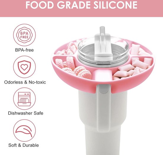 Assiettes à Snack Avec Couvercle - 102 Ml - à Snack Compatible Avec Stanley Quencher Tumbler 100 Ml Plateau A Snack En Silicone 4 Compartiments Aliments A Noix Accessoires Pour Tasses