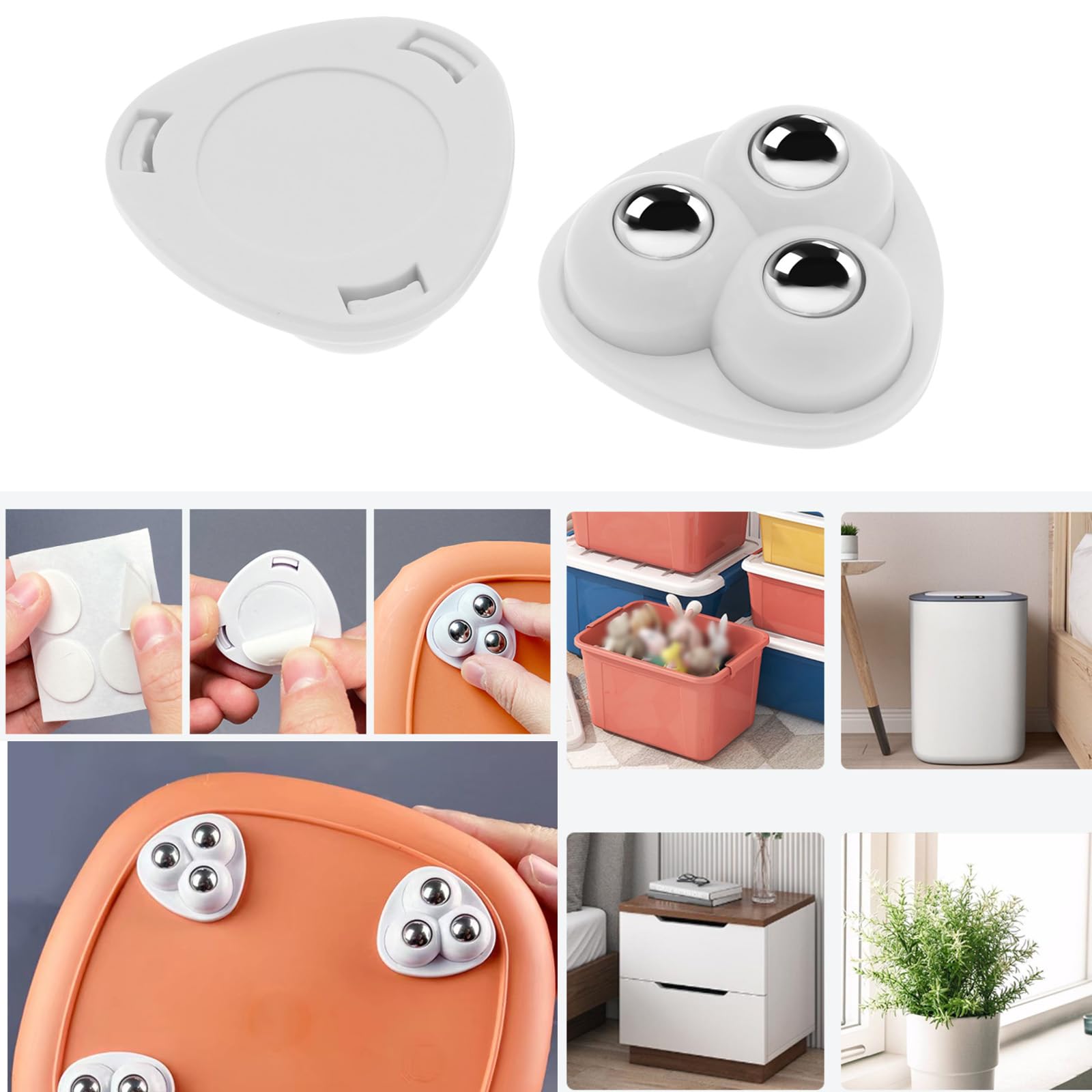 Mouvement sans rayures sur les sols. Chaque rouleau dispose d'un design autocollant qui élimine le besoin de percer ou de visser. ADERTOS 16PCS Roulettes Auto-Adhésives Mini Roulettes Pivotantes Universelles Petites Roulettes En Plastique Roulettes Pivotantes A 360 Degrés Noir Avec une capacité de charge allant jusqu'à 5 livres par roue, cet ensemble est idéal pour un usage quotidien et assure un mouvement fluide et sans effort. Forte capacité de charge : chaque roulette peut supporter jusqu'à 6 kg, ce qui la rend adaptée à une variété de meubles légers et de solutions de stockage. Contenu : 16 mini roulettes à billes 16 bases adhésives. Lot de 16 mini roulettes sphériques autocollantes pour meubles et rangement, rotatives à 360 ° Détails du produit : Ces mini roulettes à billes sont parfaites pour ajouter de la mobilité aux petits meubles, boîtes de rangement et articles ménagers. La surface lisse empêche la saleté comme les miettes ou les cheveux de se coincer, ce qui les rend parfaites pour une utilisation en intérieur et en extérieur. Conception pivotante à 360 ° : les roulettes à billes tournent en douceur dans n'importe quelle direction, réduisent la friction et garantissent un fonctionnement silencieux. ini Roulettes Roulettes Pivotantes Autocollantes Roulettes à Billes pour Boîtes de Rangeent... Installation facile : la conception auto-adhésive rend l'installation rapide et facile. Meuble Cuisine Poubelle Lot De 16 Roulettes Autocollantes Pivotantes à 360 Degrés Mini Roulettes Pour Meubles Pour plus de stabilité, les roulettes disposent également de trous de fixation à vis (vis non incluses). Elles sont également idéales pour les projets de bricolage, les jouets pour enfants et les activités artisanales. Spécifications: Matériau : plastique ABS Couleur : blanc/noir Dimensions : 4,5 x 2,8 x 1,5 cm (par rouleau) Poids : 150 g. Large application : parfaite pour une utilisation dans les cuisines, les salons, les salles de bains, les chambres et les bureaux. Il suffit de décoller le film adhésif, de coller les rouleaux sur la surface souhaitée et d'attendre un collage sûr 24h/24 et 7j/7., Aucun outil ni perçage nécessaire