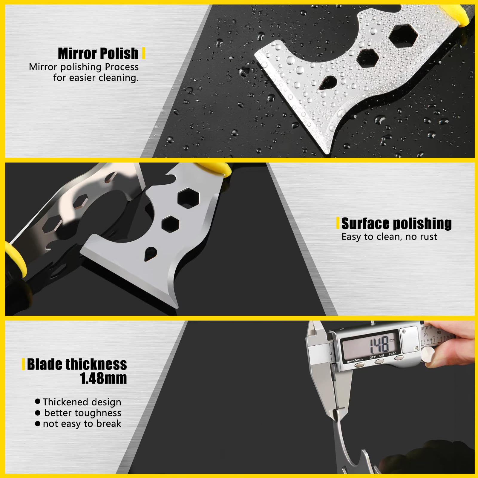 ✅【Facile à transporter】Outil grattoir pour papier peint et peinture, l'épaisseur de la lame est de 1,48 mm et ne pèse que 80 grammes, ce qui est facile à transporter et à ranger. Peut être utilisé comme grattoir droit, grattoir incurvé, burin, tournevis, extracteur de clous, ouvre-boîte, marteau, nettoyeur de rouleaux, ouvre-boîte, clé Allen, etc. Il est très approprié pour divers projets de bricolage, y compris le retrait de peinture, de papier peint, d'autocollants, d'adhésifs, etc. Pour répondre à tous vos besoins de grattage et d'application Large application : très approprié pour le mastic, le mastic, enlever la poussière, mélanger le mastic, gratter l'ancien revêtement, etc. pour répondre à tous vos besoins de grattage et d'application Caractéristiques du produit : Nom : grattoir multifonction 13 en 1., Racloir pour papier peint - Taille tranchante : 75 x 220 mm. VBESTLIFE grattoir à peinture Outil multifonctionnel de grattoir de... Outil de grattoir pour enlever la peinture, la lame est fabriquée en acier inoxydable 3CR13 avec une dureté allant jusqu'à HRC 30, ce qui est plus résistant à la corrosion que les matériaux en acier au carbone. Nous ferons de notre mieux pour vous offrir la meilleure expérience. La lame est fabriquée en acier inoxydable 3CR13 avec une dureté allant jusqu'à HRC 30, ce qui est plus résistant à la corrosion que les matériaux en acier au carbone. L'outil grattoir est adapté pour la décoration de la maison et les projets de peinture, tels que l'application de pâte à joint, le grattage du mastic de fenêtre, le retrait de la peinture, le retrait de la peinture lâche, le retrait de revêtements muraux en vinyle ou en papier, le nettoyage des fissures et des gouges, tirer des clous, ouvrir des bouteilles, paver, etc L'utilisation à long terme peut fournir un meilleur contrôle, réduire la fatigue et gratter plus efficacement Nettoyeur Rouleau Peinture Grattoir, Grattoir Peinture En Acier Inoxydable, Avec 10 Lames Metallique Grattoir Plaque Vitroceramique Grattoir A Vitre Professionnel Rasoir Pour Elimination De Ladhesif Peinture 87535922 Couteau Peintre Matériaux de haute qualité : l'outil de grattoir multi-papier peint utilise une lame en acier inoxydable durable et résistante à l'usure. L'outil grattoir à papier peint peut fonctionner rapidement sur les surfaces inclinées. L'outil grattoir est très approprié pour gratter la vieille peinture et les débris de la surface, gratter le papier peint, remplir les trous, appliquer des composés et enlever l'excès de peinture des couvercles de rouleaux standard et petits. 10 PCS Résine Grattoir Flexible Peinture Grattoir Couteau à Mastic Air Lame épaisse, ne rouille pas facilement, solide et pas facile à casser, facile à nettoyer, et peut être utilisé pendant une longue période.