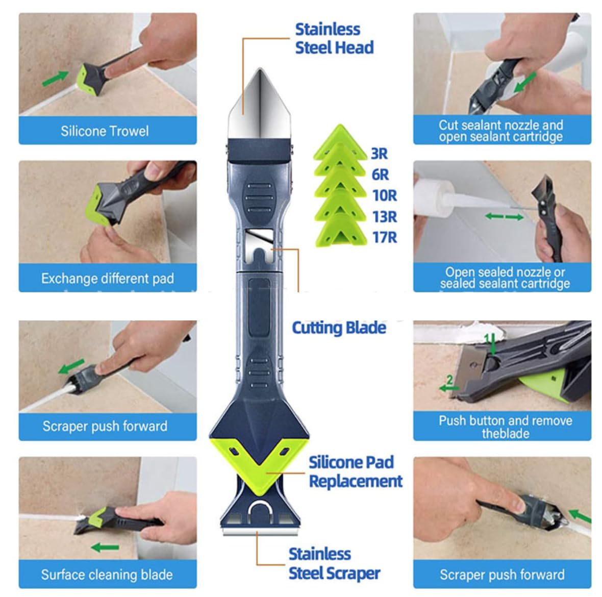 -En utilisant un dissolvant de scellant, vous pouvez créer des coins sans gaspiller de scellant, de silicone ou de coulis., Remarque:1., Ces profileurs scellés ont des bords et des coins tranchants. Alternativement, vous pouvez appliquer un peu de scellant frais sur la saleté pour le rendre plus facile à nettoyer lorsque le scellant sèche. 【Matériaux de haute qualité】:L'outil d'élimination du scellant est fait de plastique ABS et de silicone de haute qualité, robuste, bonne flexibilité, robuste, résistant à l'usure, résistant aux solvants, ne blessera pas les mains ou ne rayera pas la surface. Que vous l'utilisiez pour appliquer un nouveau calfeutrage sur les joints du sol de la cuisine, les carreaux de salle de bain ou pour aplatir le débordement de colle irrégulier autour des joints de porte ou des joints de rebord de fenêtre, ce kit peut combler divers espaces de différentes tailles Grattoir en Silicone avec Spatule Intégrée - SONEW - Portable et... Pistolet Silicone Outils Pour Joints De Silicone (Cuisine, Salle De Bain, Sols) - 10 Joint Silicone Liste de livraison:1 * pointe de colle jaune1 * grattoir à double tête jaune1 * pelle en caoutchouc jaune8 * grattoir bleu * 8 (angle différent)2 * pelle en caoutchouc noir Dissolvant de Silicone 5 en 1, mastic de finition ... – Grandado Il est idéal pour nettoyer ou jointoyer les cuisines, les salles de bains, les installations sanitaires, les baignoires, les éviers, les toilettes, les éviers, les portes et les fenêtres. 【Facile à utiliser】:Il suffit de pousser doucement le mastic silicone le long de la ligne à sceller. 【Ensemble de dissolvant en silicone】:L'ensemble comprend une pointe de colle jaune, un grattoir à double extrémité jaune, une spatule jaune, huit grattoirs bleus (angles différents) et deux spatules noires pour répondre à vos différents besoins de travail.