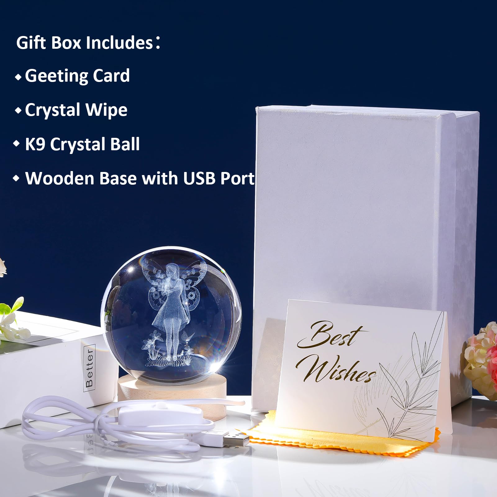 Matériau et taille : fabriqué en cristal K9 de haute qualité, la fée gravée en 3D avec des fleurs est claire et lisse, étincelante au soleil. La taille de la figurine de fée en cristal est de 7,9 x 7,9 x 9,9 cm. Contenu : chaque boule de cristal féérique est sélectionnée par des travailleurs avec soin. Arikyrist Boule de cristal 3D en forme de rose gravée au laser pour petite amie, décoration d'intérieur, veilleuse en forme de boule de cristal avec base lumineuse en bois Arikyrist Lampe de fée 3D avec fleurs en forme de boule de cristal avec base en bois, figurines de fée en cristal gravées au laser, décoration d'intérieur, boule de cristal de fée, veilleuse cadeau, sphère en verre, presse-papier Cadeau féérique : les figurines de fée 3D en cristal sont non seulement une décoration pour la maison et le bureau, mais aussi une idée cadeau pratique pour diverses occasions. lampe fée feutrée mason colombage tudor lampe par FeltedArtToWear... Il est également adapté pour une fête d'anniversaire, un anniversaire de mariage, la saison scolaire, la fête des mères, la Saint-Valentin, Noël, Thanksgiving, etc. La figurine de fée en cristal peut être utilisée comme cadeau parfait pour les femmes, les filles, les enfants, les amis pour exprimer votre amour et votre appréciation. Il crée une atmosphère élégante dans toute la pièce et calme votre humeur. Veuillez nous contacter par e-mail librement à tout moment si vous avez des questions sur le produit, nous allons résoudre votre problème immédiatement. Lampe nomade Passe-Partout Petite Fée étoilée – Balt.e Presse Papier Verre YWHL Figurine De Fée En Cristal 3D Avec Libellule Et Fleur De Lotus, Gravée Au Laser Avec Base Lumineuse Colorée, Cadeau Romantique En Cristal Pour Petite Amie, épouse, Veilleuse LED Fée Figurine Elle peut faire émettre une lumière douce en forme de boule de cristal féérique et peut également être utilisée comme veilleuse boule de cristal.