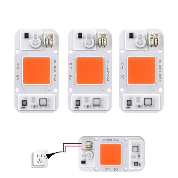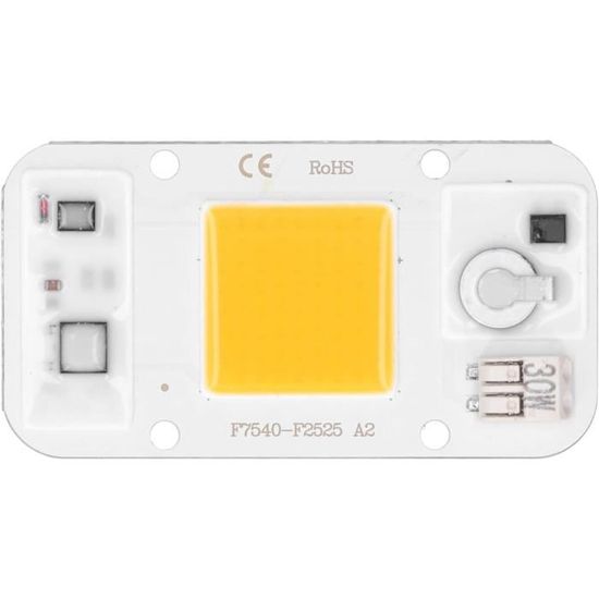 Description : L'ampoule LED COB est un ajout polyvalent et puissant à votre arsenal d'éclairage. 【Économique et Efficace】Avec une faible consommation énergétique et une efficacité lumineuse élevée, l' Ampoule à puce LED est idéal pour ceux qui cherchent à réduire leurs coûts d'énergie sans sacrifier la qualité de l'éclairage, tout en bénéficiant d'une longue durée de vie. 【Polyvalence d'Utilisation】Utilisable dans une variété de contextes, de l'éclairage paysager à l'éclairage artistique, la est l'option e pour divers besoins, offrant une flexibilité d'éclairage pour répondre aux différentes exigences esthétiques. 1 pièce Lumière LED COB DC Puce LED Chip On Board 10W 20W 30W Son design robuste assure une utilisation prolongée sans compromis sur la performance, e pour des installations durables. AMPOULE LED PUCE 100W 7500LM Blanche Projecteur Haute Puissance Avec un design robuste en aluminium et une puissance maximale de 100W, elle promet un éclairage uniforme et sans ombre, parfait pour les espaces nécessitant une forte intensité lumineuse. Spécification : - Matériau du support : Aluminium - Tension : 220 V - Puissance : 20 W, 30 W, 50 W (en option) - Couleur d'éclairage : Blanc chaud (28003500 K), Blanc (60006500 K) - Flux lumineux : 80LM/W - Angle de faisceau : 180 degrés - Durée de vie : 10 000 heures - Dimensions : Approx. Que vous préfériez une lumière blanche chaude ou froide, cette LED offre une flexibilité inégalée pour n'importe quel environnement. RUNING-Lampe À Puce Led 25 Pcs Haute Luminosité Puce Intégrée Source De...