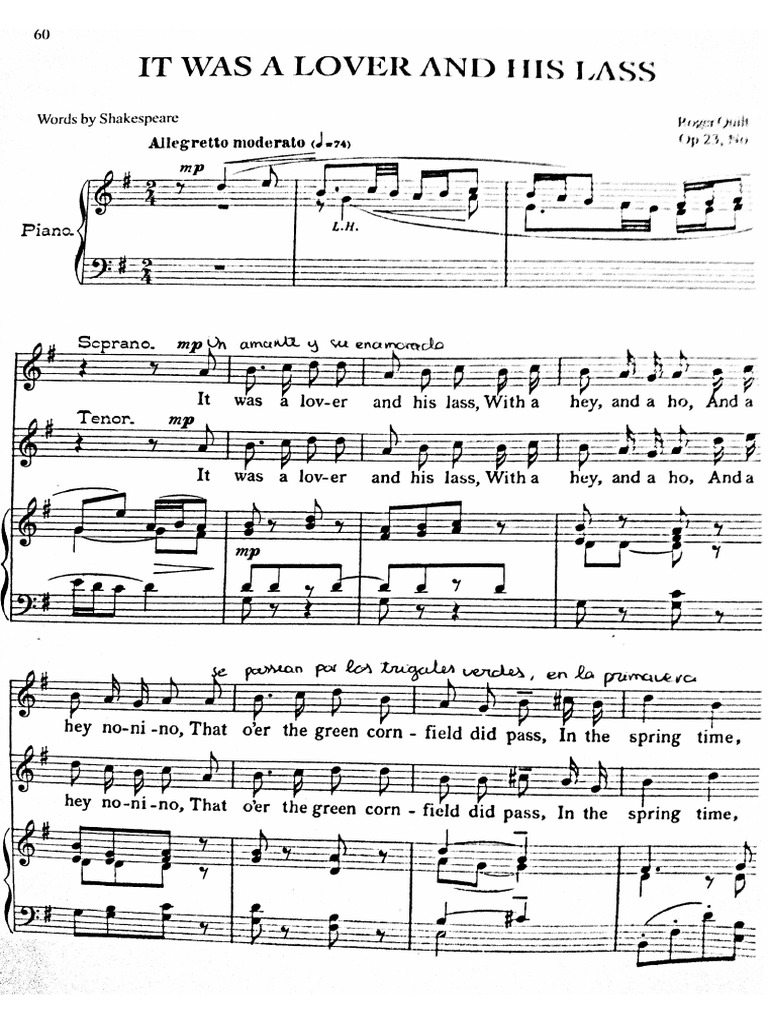 Birthday Madrigals (Version for Mixed Choir, Piano & Double Bass): No. 1, It Was a Lover and His Lass - song and lyrics by John Rutter, The Cambridge Singers, Malcolm Creese, Wayne It Was A Lover and His Lass Sheet Music by B Wayne Bisbee (SKU: SBMP479... It Was A Lover And His Lass By Thomas Morley Sheet Music For Piano In 1983 he formed his own choir The Cambridge Singers, with whom he has made numerous recordings on the Collegium Records label, and he appears regularly in several countries as a guest conductor and choral ambassador. John holds a Lambeth Doctorate in Music, and was awarded a CBE for services to music in 2007