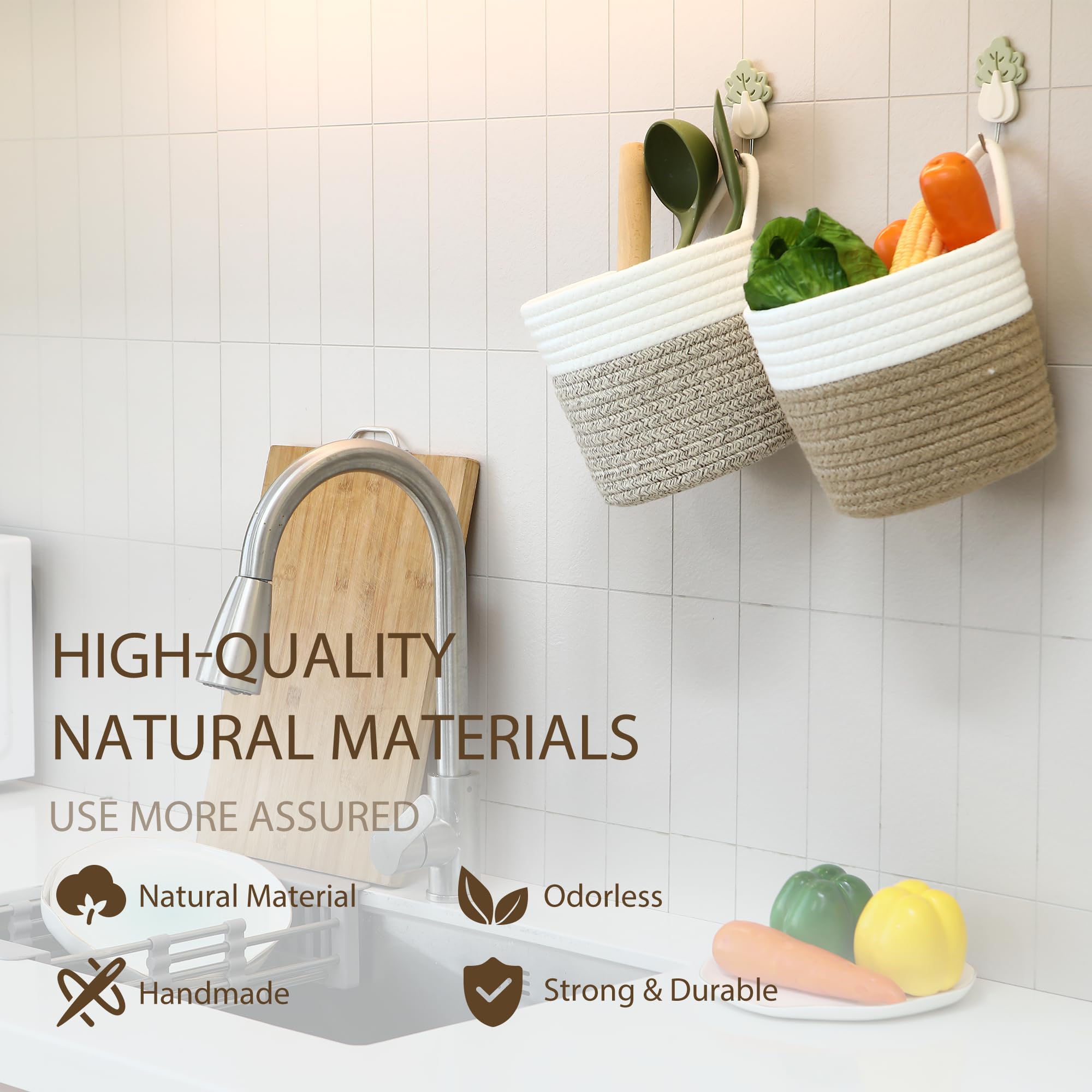 Tissu en corde de coton naturel de qualité supérieure : ces paniers de rangement sont fabriqués en corde de coton naturel doux, respirant et durable Petit panier à suspendre en corde de coton – Le panier de rangement mesure environ 17 x 17 cm (diamètre x H) qui peut être utilisé comme pot de fleurs suspendu, pot de fleurs, ainsi que tout à fait qualifié pour organiser de petites choses sur le mur/bureau, sur le vélo, derrière la porte ou partout où vous le souhaitez Poignées utiles avec design pliable : le panier est équipé de poignées pour un déplacement pratique et le matériau souple vous permet de simplement plier le panier à plat pour un rangement peu encombrant lorsque vous ne vous en servez pas Panier De Rangement En Corde De Coton Petit Boîte De Rangement Tissé... Panier de rangement extra large en corde de coton avec poignées, panier... Panier à Suspendre Pas Cher Goodpick Lot De 2 Paniers De Rangement à Suspendre En Corde De Jute - 20 X 17,8 Cm - Tissé Pour Placard, Clés, Portefeuille, Plantes, Serviettes, Jouets, Blanc Et Chanvre Petit Panier Paniers De Rangement De Corde De Coton,Panier De Tri De Débris De Dessus De Table Tissé De Corde