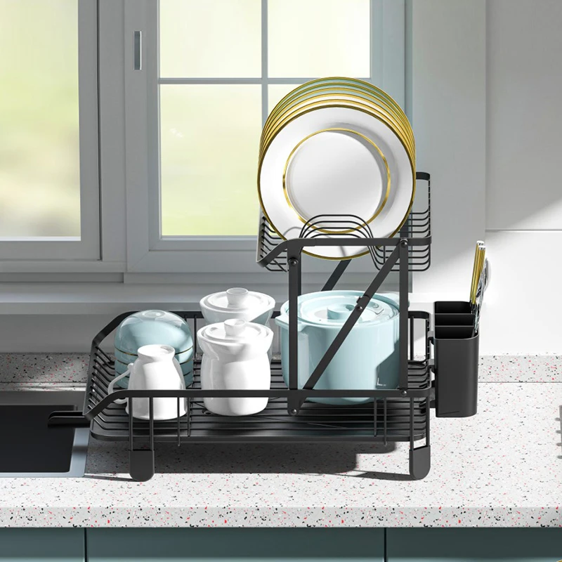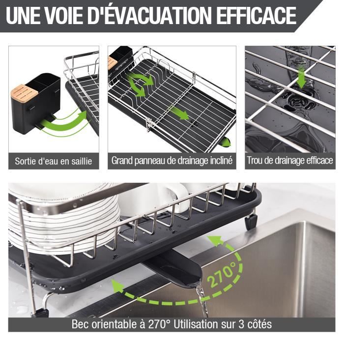 Une fois la vaisselle lavée et rangée, l'eau s'égoutte de la vaisselle peut être vidangé directement. Egouttoir à Vaisselle Égouttoir à Vaisselle Extensible - Ajustable - Acier Inoxydable 304 - Pliable - Avec Egouttoir Inox Pour Vaisselle Il convient au nettoyage des hottes de cuisine, des poêles, des casseroles, de la vaisselle variée, des produits en céramique et d'autres produits. ☑【Roulement sans souci】 : Ce support à vaisselle multifonctionnel est fabriqué en acier au carbone de haute qualité, avec un revêtement en poudre noire sur la surface, qui est antirouille et anticorrosion. Égouttoir à Vaisselle Double Couche, égouttoir De Cuisine En Acier Inoxydable Noir Avec Porte Tasses Et Porte Couverts Tapis De Sechage 98360035 ✅【Pieds antidérapants】Ce support de rangement pour ustensiles de cuisine est équipé de pieds antidérapants, qui peuvent augmenter la friction, afin de protéger l'étagère et de la placer fermement. Et une forte élimination des taches, convient au nettoyage des hottes de cuisine, des cuisinières, des casseroles, de la vaisselle variée, des produits en céramique et d'autres produits. Le bec de drainage pivotant peut directement drainer l'eau dans l'évier. L'égouttoir à assiettes et le porte-couverts sont démontables, ce qui rend l'égouttoir... ✅ 【 Portant et sans souci 】 Ce support à vaisselle multifonctionnel est fabriqué en acier au carbone de haute qualité, avec un revêtement en poudre noire sur la surface, antirouille et anti-corrosion, il ne sera pas déformé lorsqu'il est pressé. articles de manière ordonnée, adaptée à toutes les saisons. De plus, la couche supérieure de ce support à vaisselle peut être démontée et peut être utilisée comme un panier séparé pour ranger des articles tels que des fruits et des légumes, ce qui est très pratique. ☑【2 éponges de nettoyage et tampons à récurer】 : Le tampon à récurer bleu est fabriqué en fibre éponge, qui ne blesse pas les mains lorsqu'il est utilisé, a une forte absorption d'eau, mousse rapidement et abondamment, se déshydrate et sèche immédiatement après utilisation, n'a pas d'odeur particulière, n'est pas facile à reproduire. Ils peuvent être stockés dans différentes zones et peuvent stocker une variété d'ustensiles de cuisine. par des objets lourds, et il est résistant à la saleté et plus durable. ✅【Vidange automatique】Ce support est équipé d'un bac de vidange amovible. Le bac de vidange est équipé d'un trou de vidange et d'un tuyau de guidage d'eau télescopique réglable à 360°.